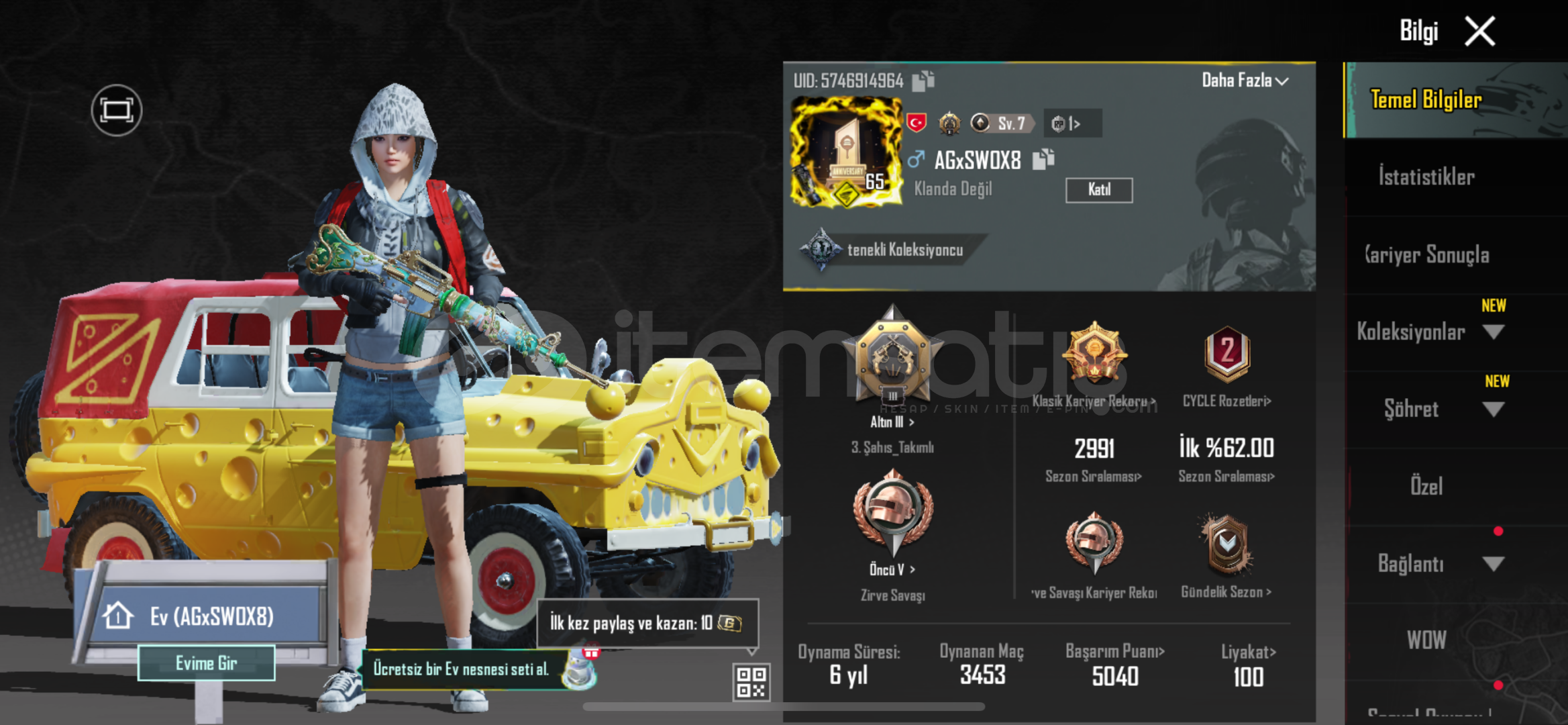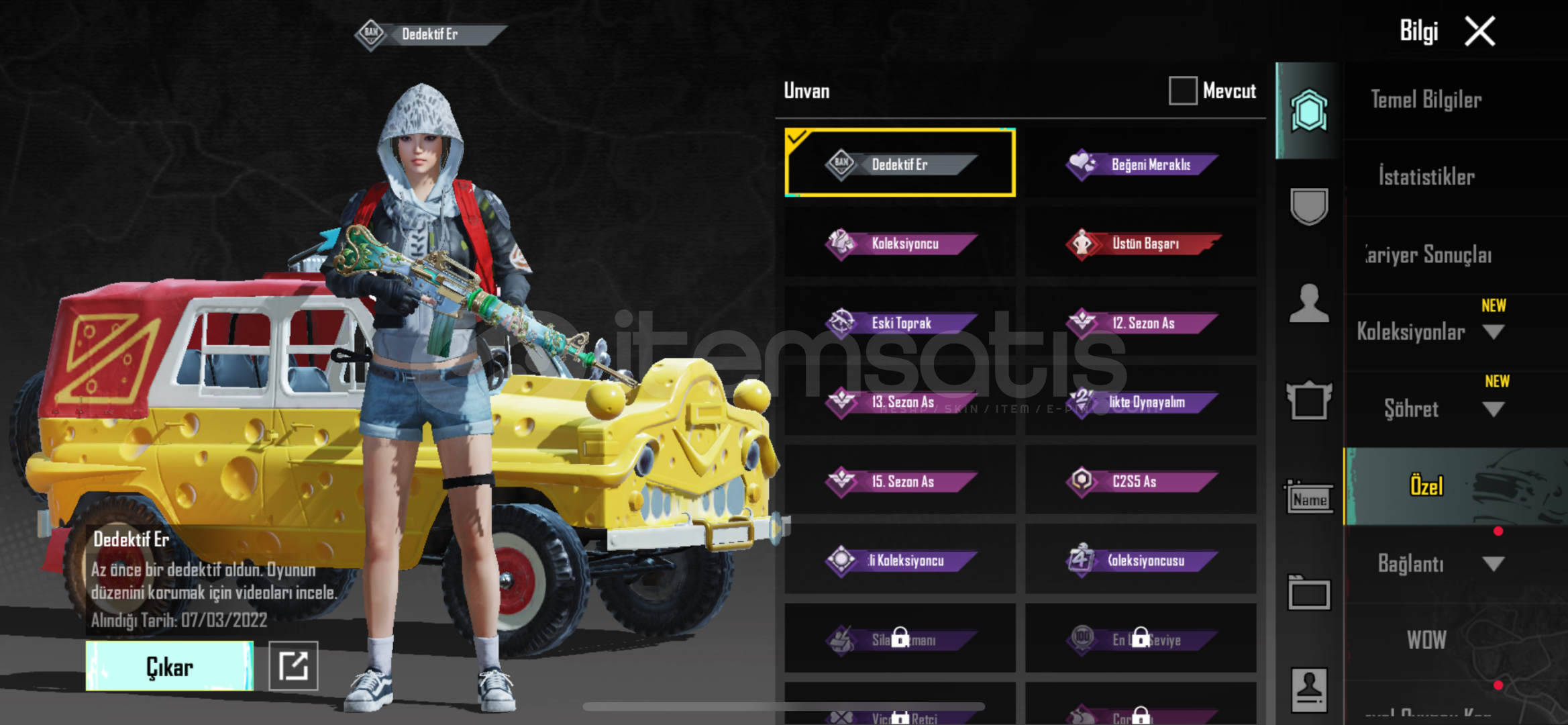 Hesap çok iyi eski sezon hesabı dedektif er ünvanı vardır 12.sezon as olmuştur iyi hesap Tek Bağ Eposta 1 adet isim yenileme kartı 5 adet kalan isim yenileme kartı mevcuttur