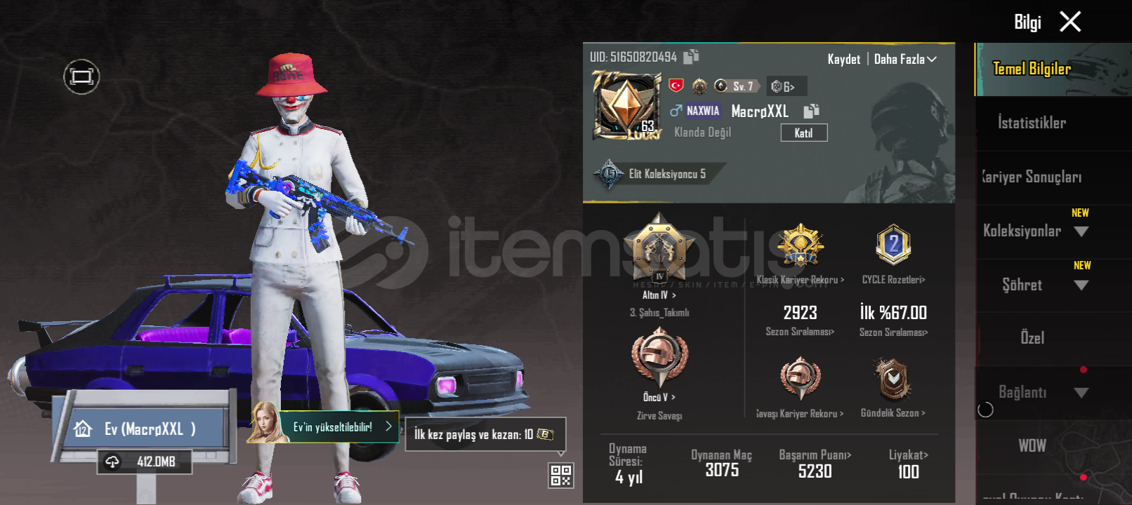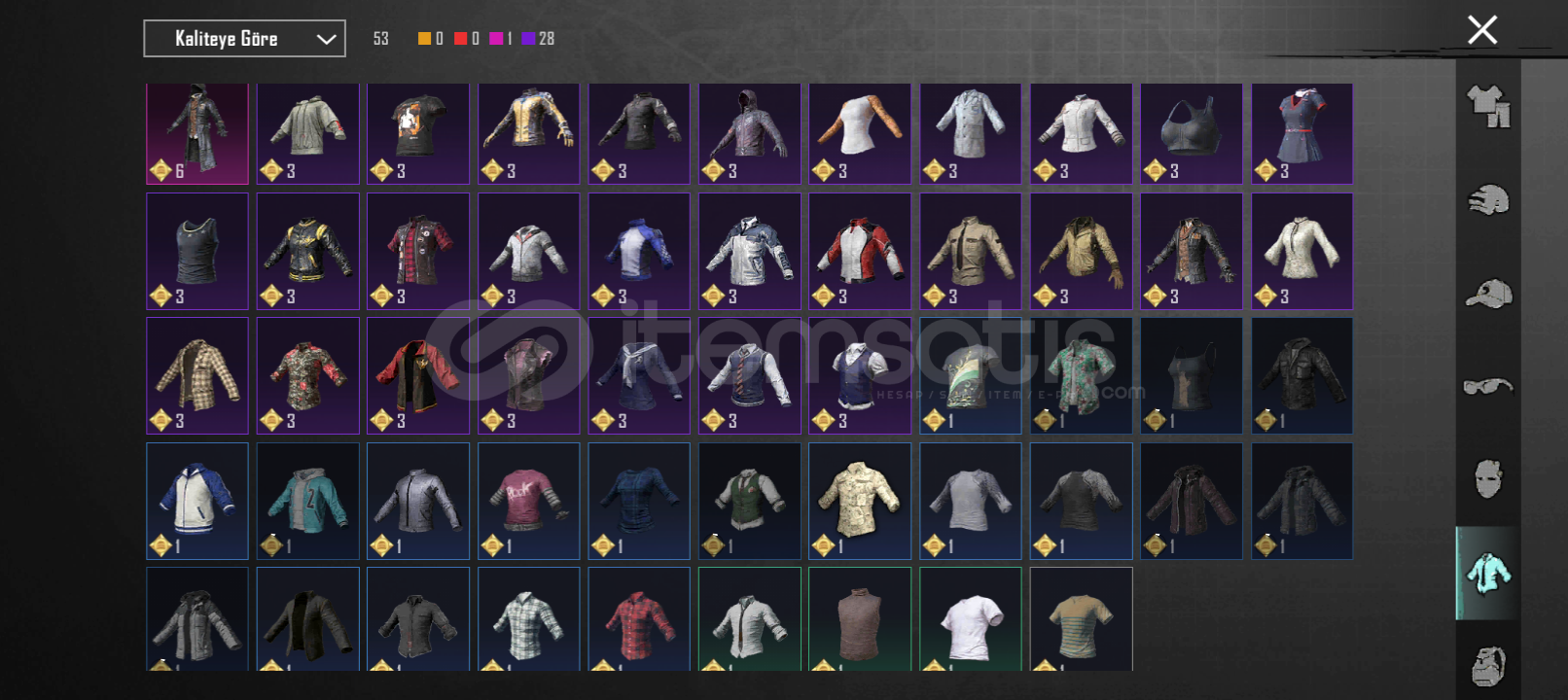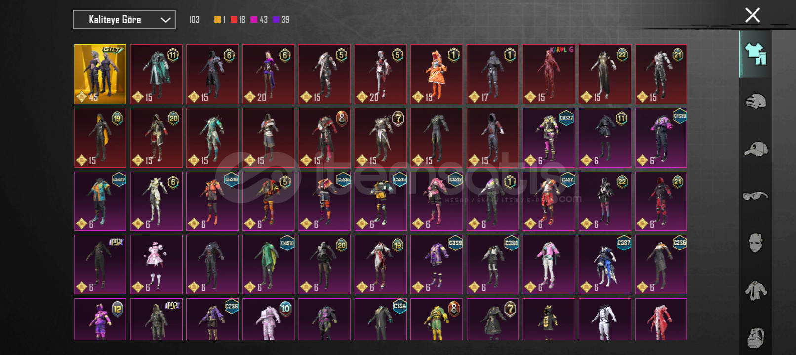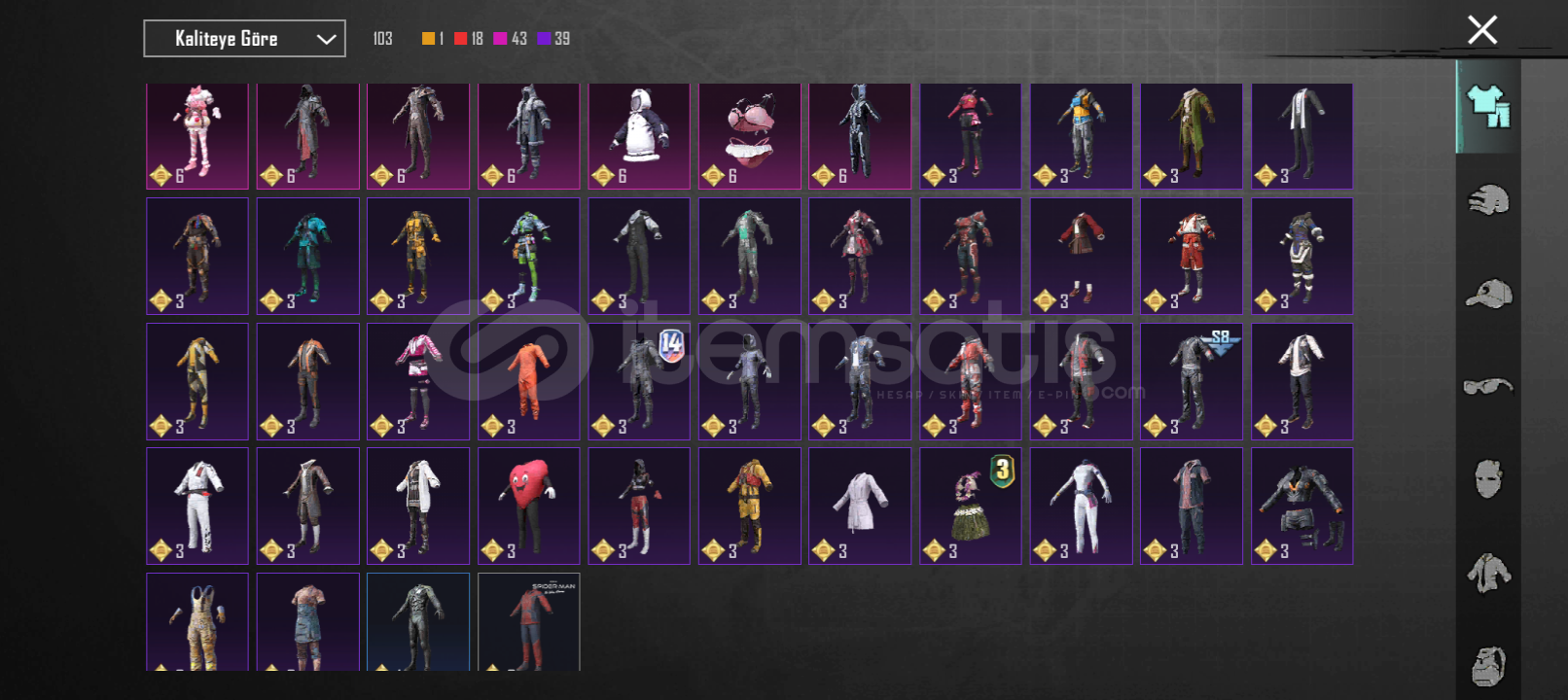 Hesabin içindekilerShinobi ruhu seti nihai Komutan alt üst vardırİtfaiyeci seti vardır İşgalci seti vardırDistopya seti vardırKarolg nin kirmizi seti vardır Canavar tulumu seti siyah olanS2 maskesi vardırKor alev sırt çantası destansıEflatun gece Dacia 1 svy vardır10 tane RP açılmıştır Birsuru destansı emoji vardırEsrarengiz göçebe paraşütü vardı...