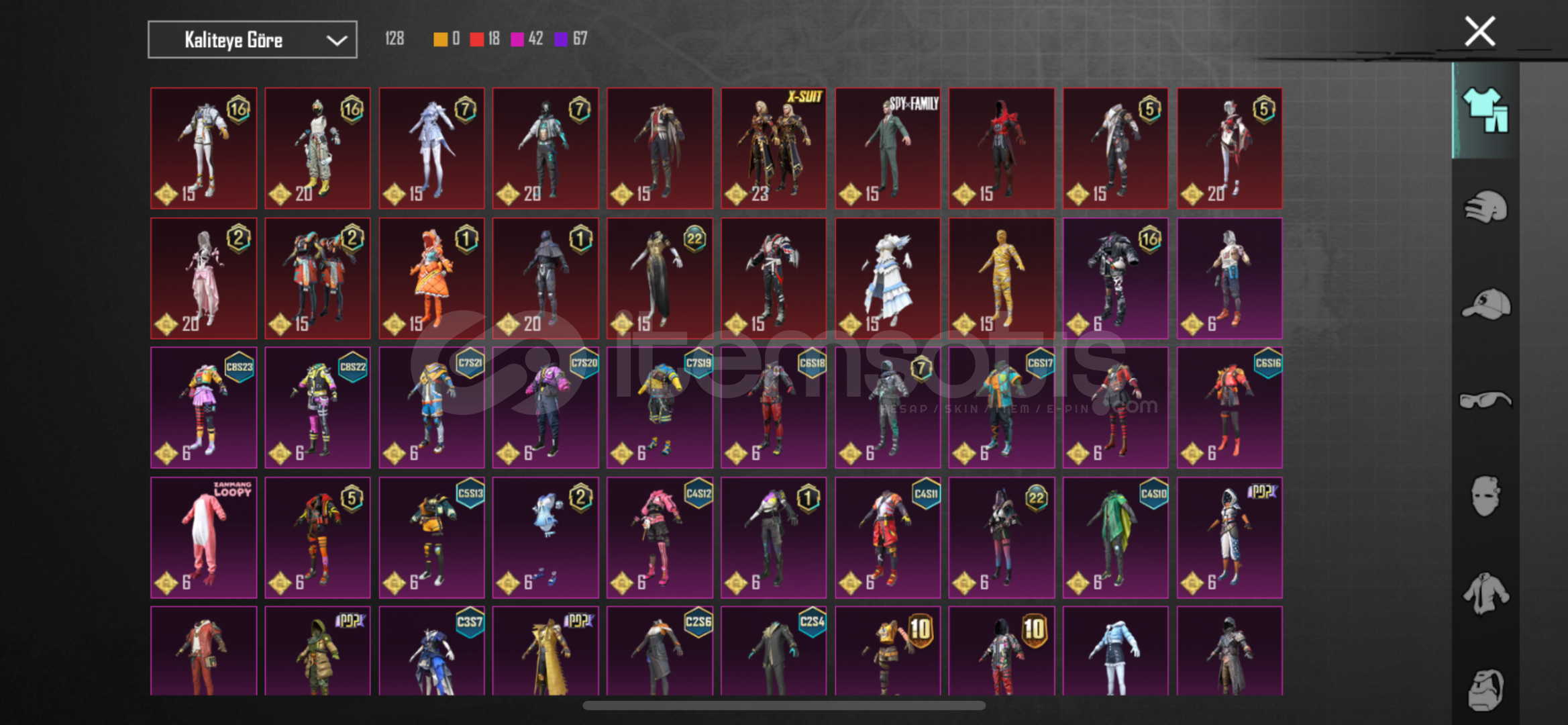 Dolu Dolu Hesap hepsini Açıklamaya yazamadığım daha bir çok kıyafet silah mevcuttur. Pazarlık Payı Az Da Olsa Vardır.