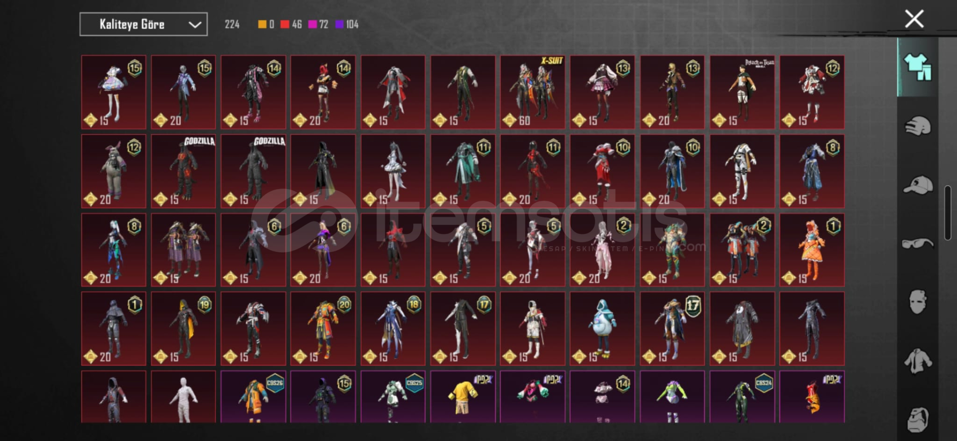 84 DESTANSI25 YÜKSELTILEBILIRBAŞI BOŞ İSYAN M7(4LVL)KAHRAMANKIK AĞIDI AWM(3LVL)BUZUL ÇEKİCİ UZİ(1LVL)UMP ÖLÜM DUYURULU KAR98(3LVL)YEDI DENIZLER(3LVL)M249(3LVL)BRUCE LEE SETIELIT PASS PLUS AÇIK TOPLAM 31 UNVAN74LVL HESAP57 KOLEKSIYON DETAYLI BAKMAK ISTEYENLER ICIN ID 5125212311115.SEZON HESABIDIR BOL KOMBINLIKTIR3LVLIK XSUIT BULUNURBAĞLARIN HEPSI DEVEDILECEKTIR FORM GEÇMİŞİ YOKTUR