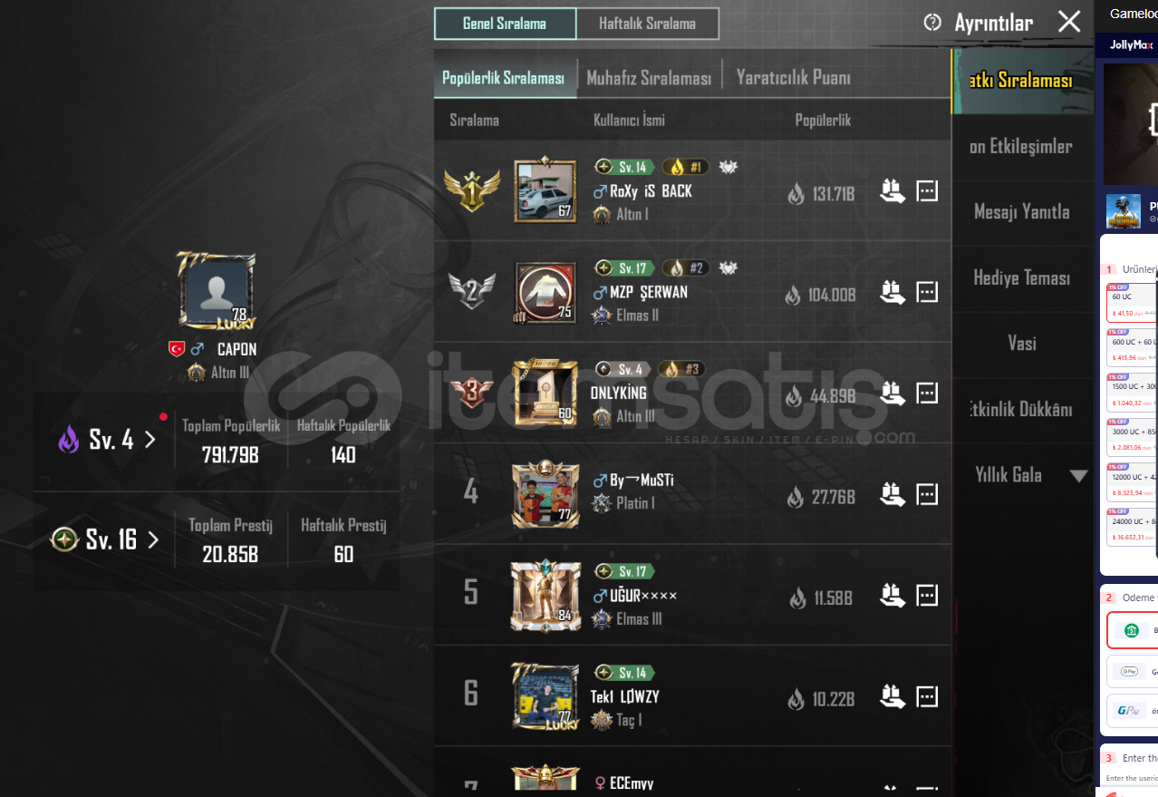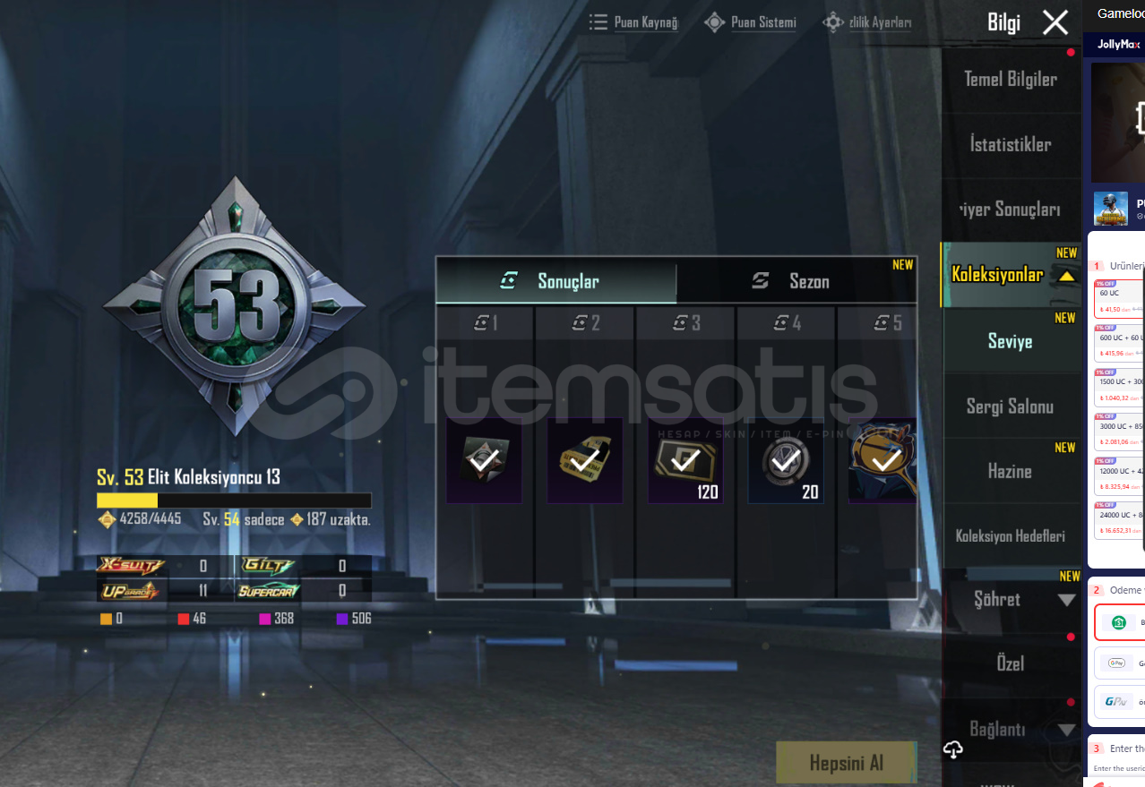 Hesapta ayrıca 4-5 karakter açık olup, koleksiyon açısından oldukça zengindir.