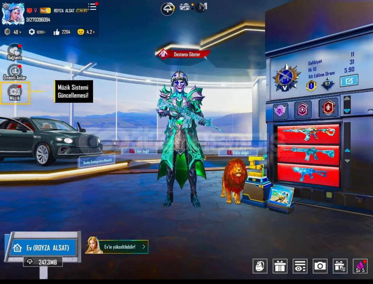 125 Destansı Hesap19/30 Ulti7 Adet Zırh X SuitFiravun Zırh X 4SvÇığ Zırh X 4SvCehennem Sureti SetiGümüş Guru SetiTekinsiz Soytarı SetiKış Majeste SetiShinobi Ruhu SetiHayali Amiral SetiÖlüm Meleği SetiVampir Kontes SetiVahşi Haydut Seti2 Adet Spor ArabaBentley Benteyga ManyetikSSC Tuatra Striker Tan Işığı67 Adet Geliştirebilir37 Adet Mesaj Duyurusu4x 7Lwl 3x Red