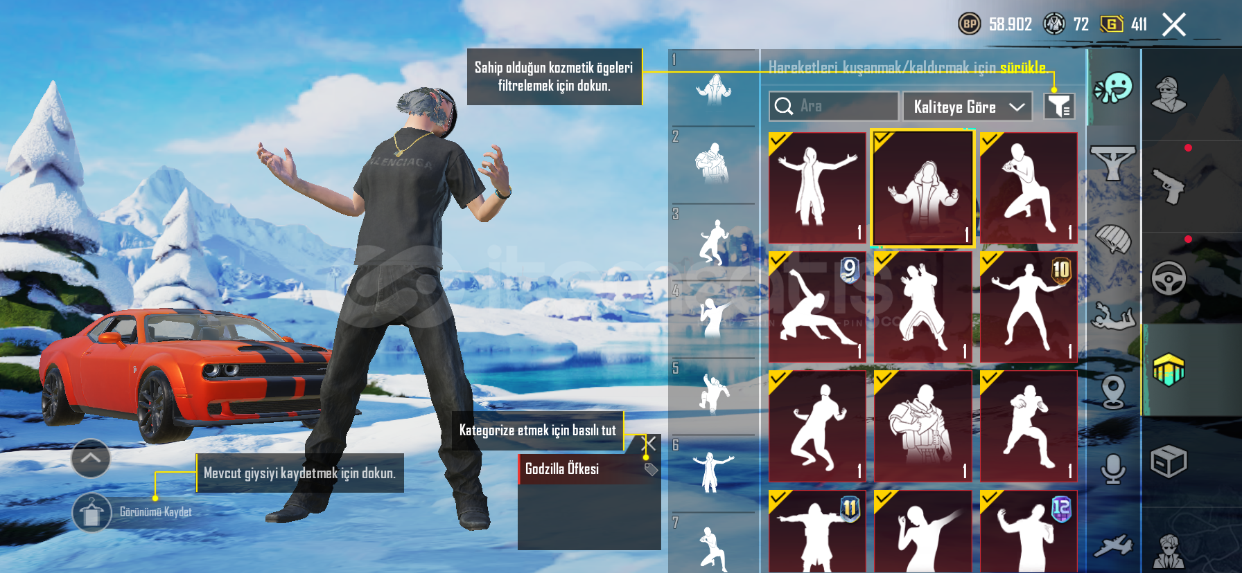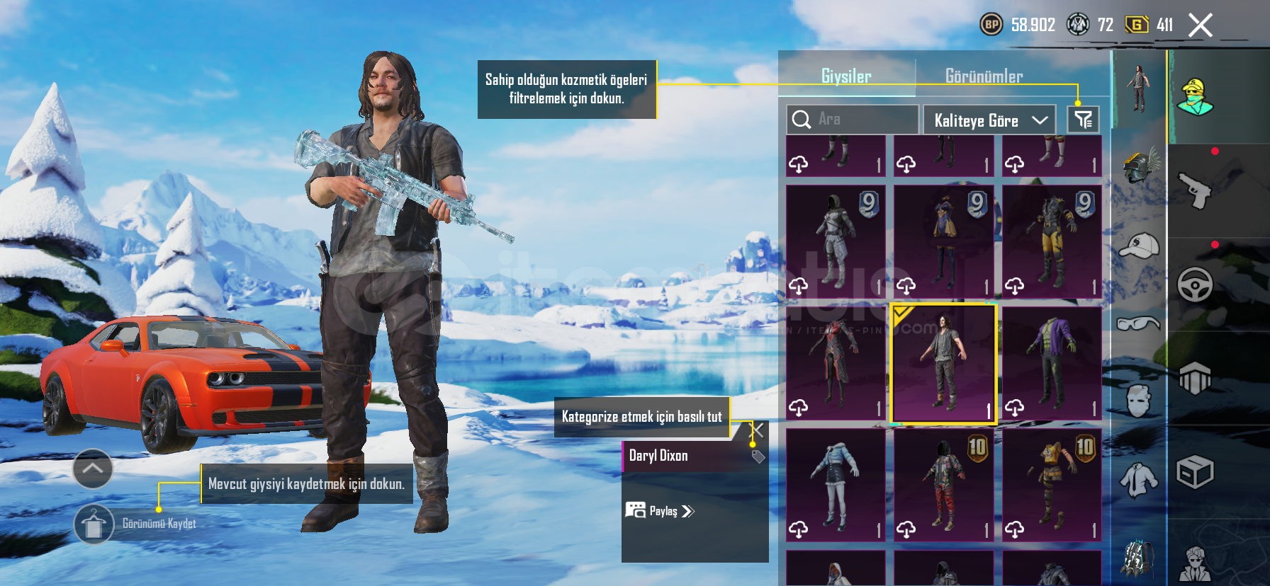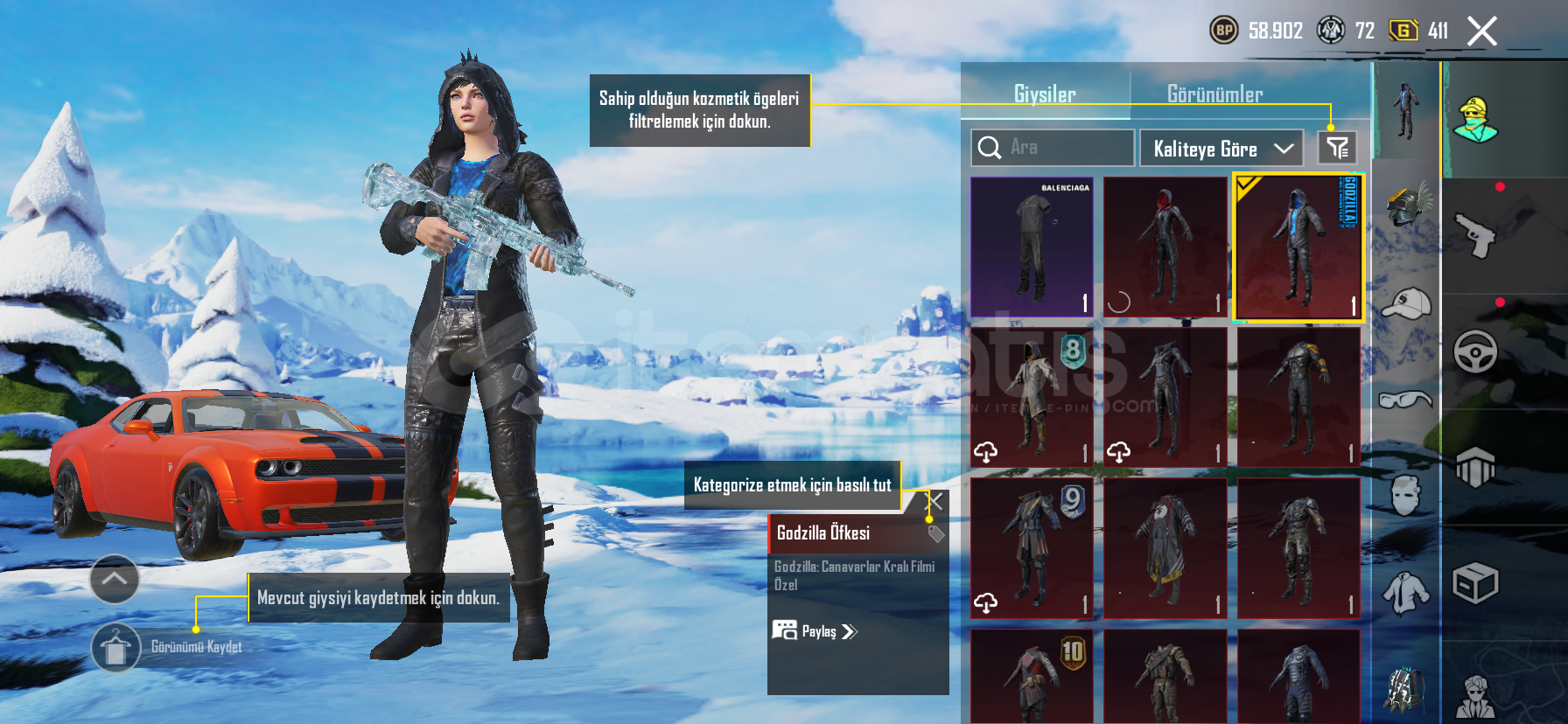 Herkese iyi satışlar dilerimHesapta nadir itemler bulunmaktadır4 Sezon Fatih çerçevesiGodzilla Seti (nadir)Rick Grimes(nadir)Sarı Mumya Balenciaga Yeni SetSilahlar 26 Yükseltilebilir Silah BUZ M4 6 seviyeGodzilla Awm 4 P90 4Ump 4Mama Scar 3 (Ölüm Duyurulu)3 Adet Dodge Araç Bulunmaktadır TDM KOMBİNLERİ FULMAVİ FORMA ALT ÜSTŞEHİR SAKİNİ ALT KOMUTAN ALT BAĞLAR-TELEFON-MAİLDETAYLI VİDE...