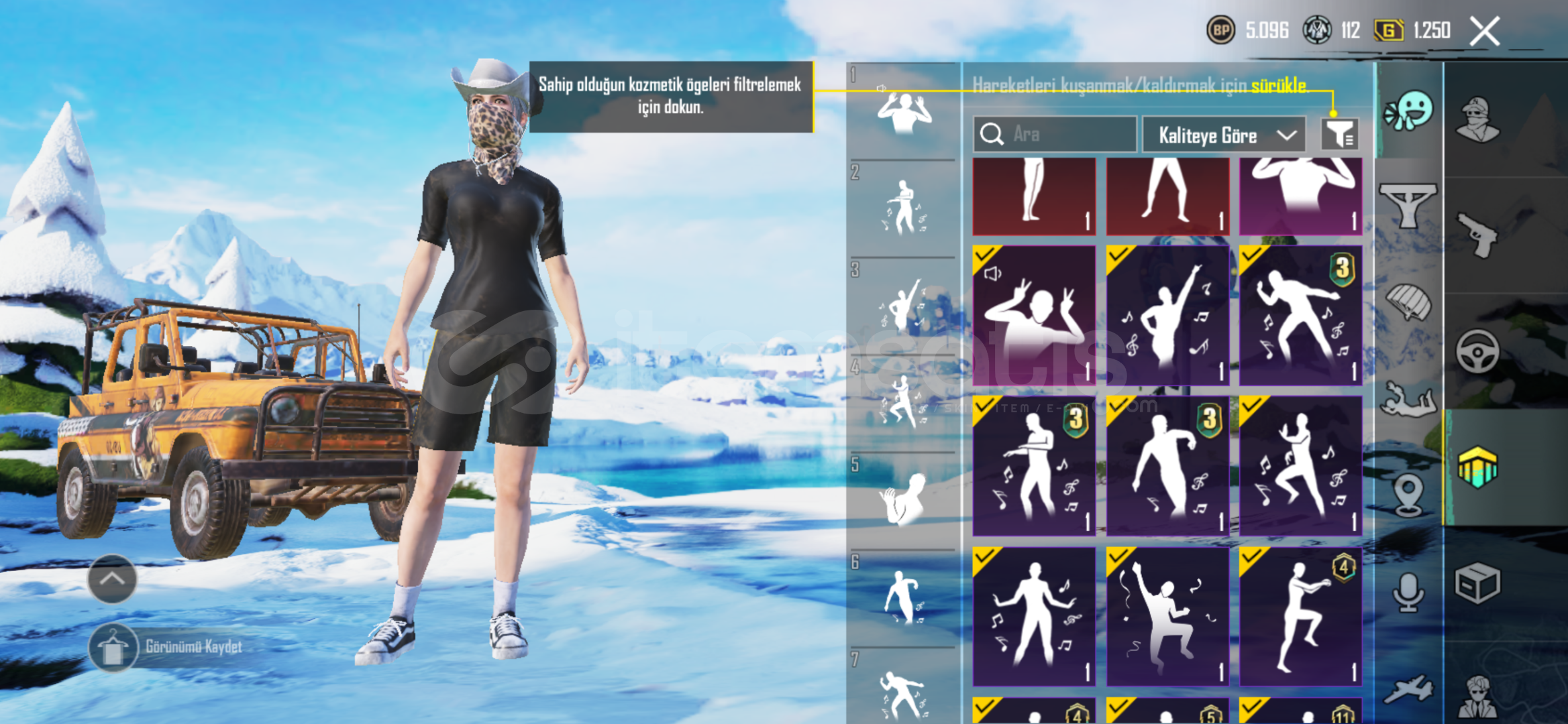 hesapta görev a/b siyah forma ful nadir emojiler bulunmaktadır s3 s6 s7 vardır