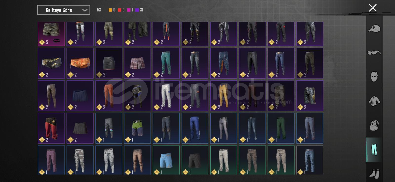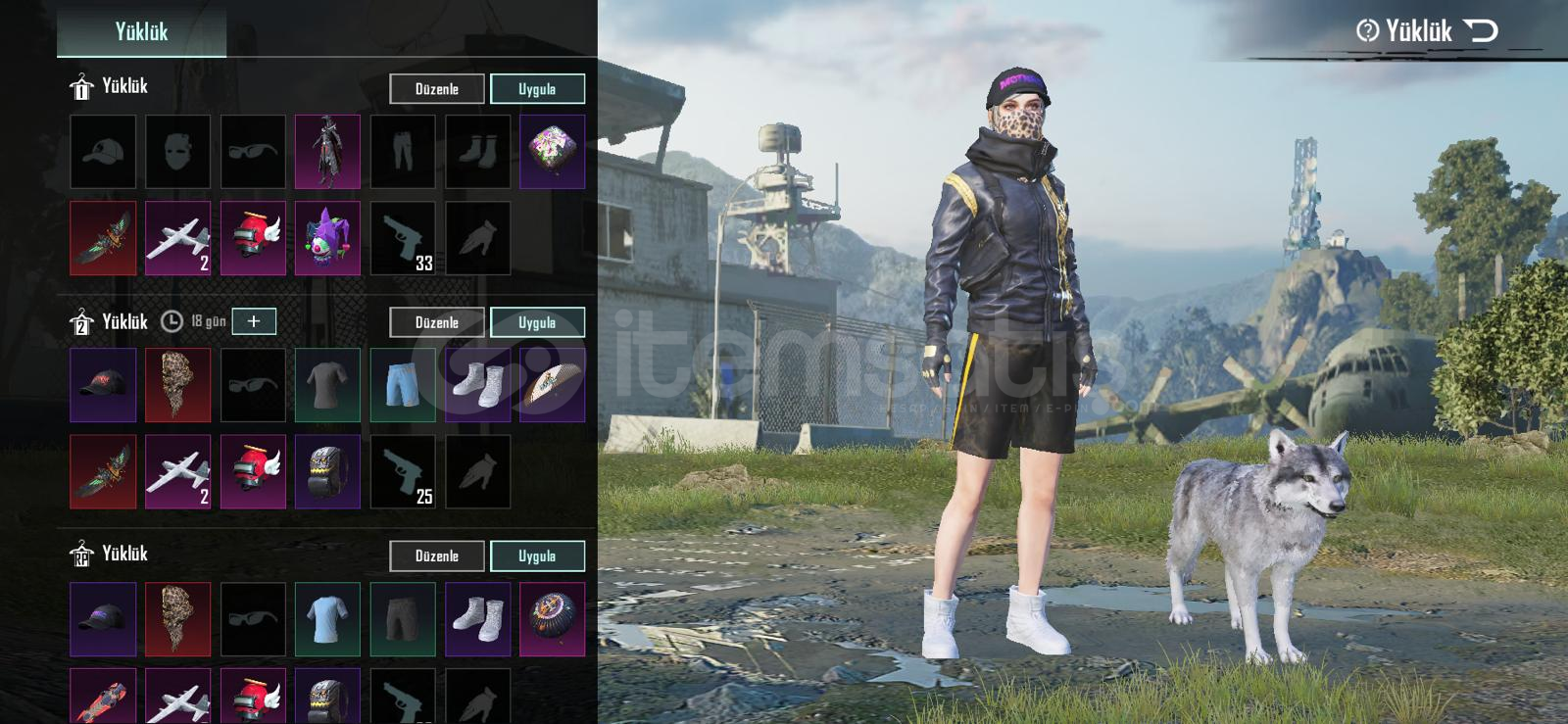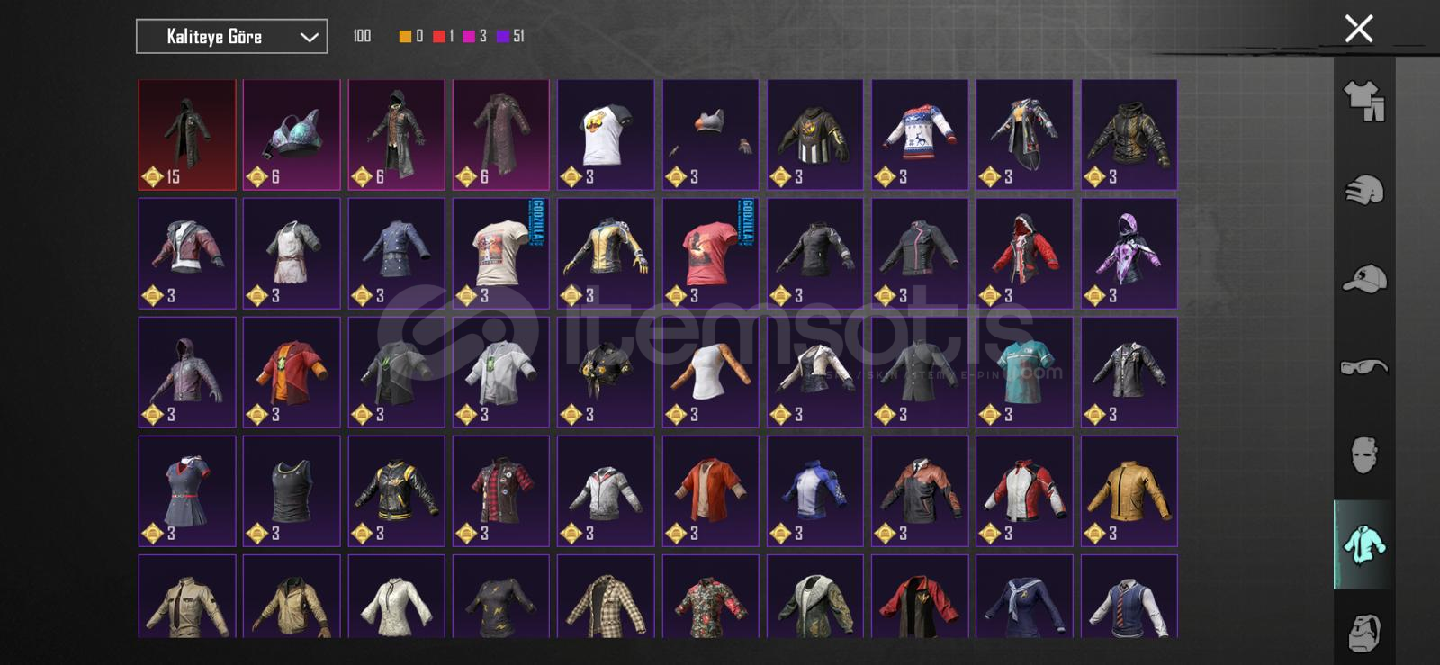 72 sv 100/1 ünvan kuzgun çerçeve44 destansı322 pembe 485 mor148 silah kaplaması22 araç kaplaması2 yoldaş 1 giysi702 giysi1adet xsuitkuzgun 1 sv9 adet yükseltilebilir silah9materyel2 kırmızı taş203 boyaşanslı fare setiilk kan setigizlilik setikurtlar formasıpizzacı seti3 adet godzilla şapkasıpmgc şapkası2.sezon devriye şapkasıgodzilla kafasıbez maskekoyu alt...