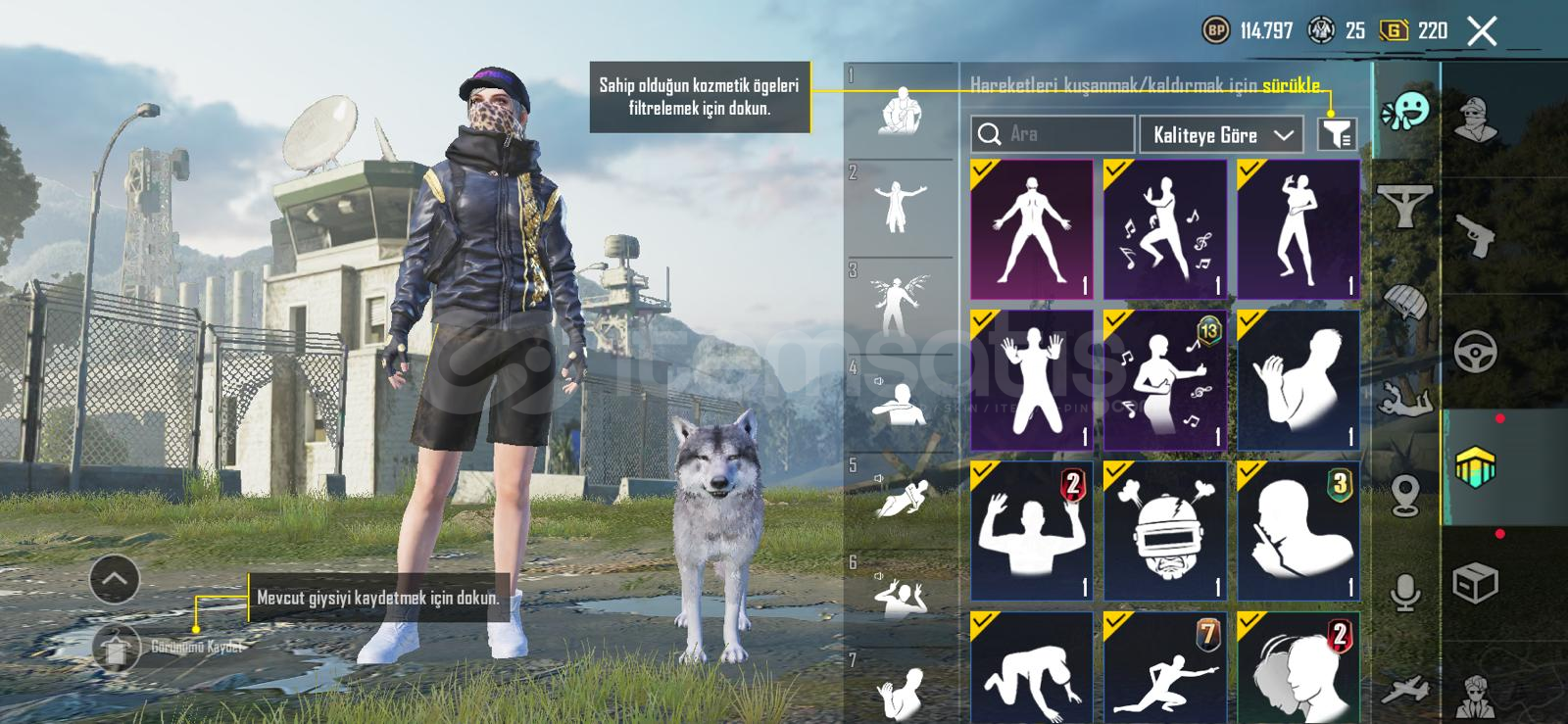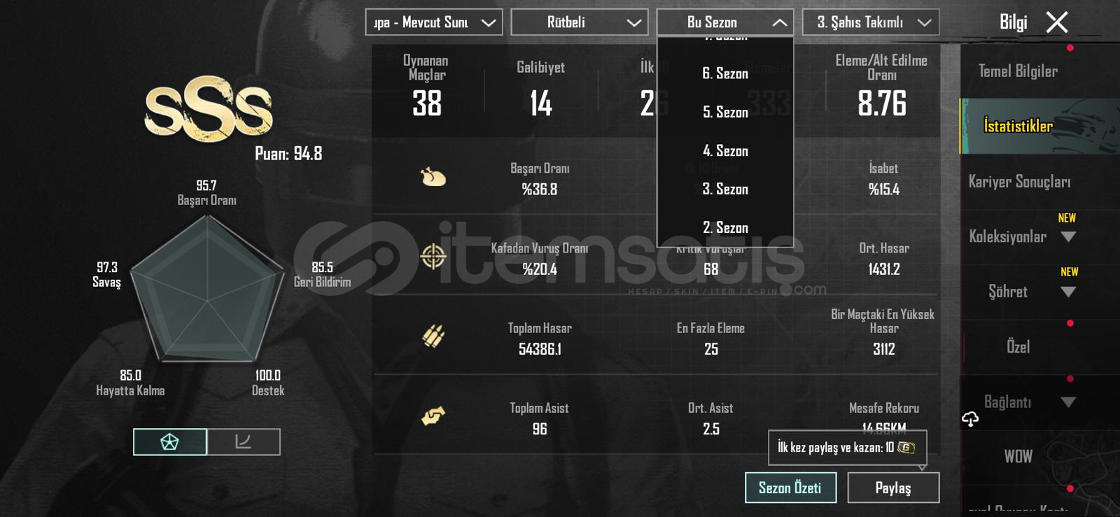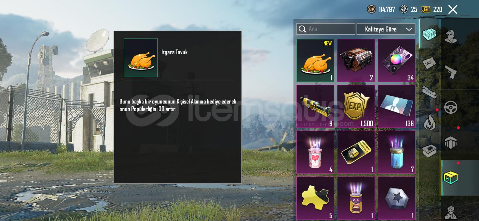 72 sv 100/1 ünvan kuzgun çerçeve44 destansı322 pembe 485 mor148 silah kaplaması22 araç kaplaması2 yoldaş 1 giysi702 giysi1adet xsuitkuzgun 1 sv9 adet yükseltilebilir silah9materyel2 kırmızı taş203 boyaşanslı fare setiilk kan setigizlilik setikurtlar formasıpizzacı seti3 adet godzilla şapkasıpmgc şapkası2.sezon devriye şapkasıgodzilla kafasıbez maskekoyu alt...