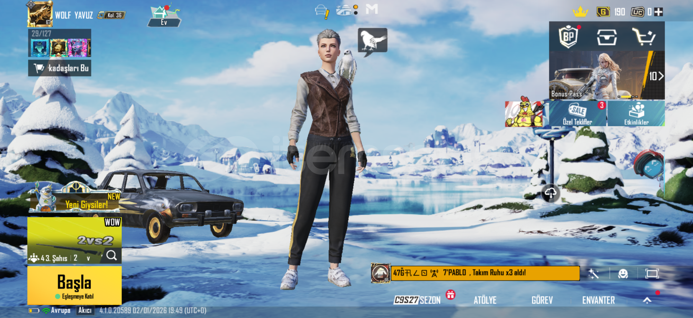 Nadir PUBG hesabi yanında 5sv klanda vardırve kovboy deri ceketi ve 1st altı vardır ve eposta ve yel bağlıdır değişime açıktır