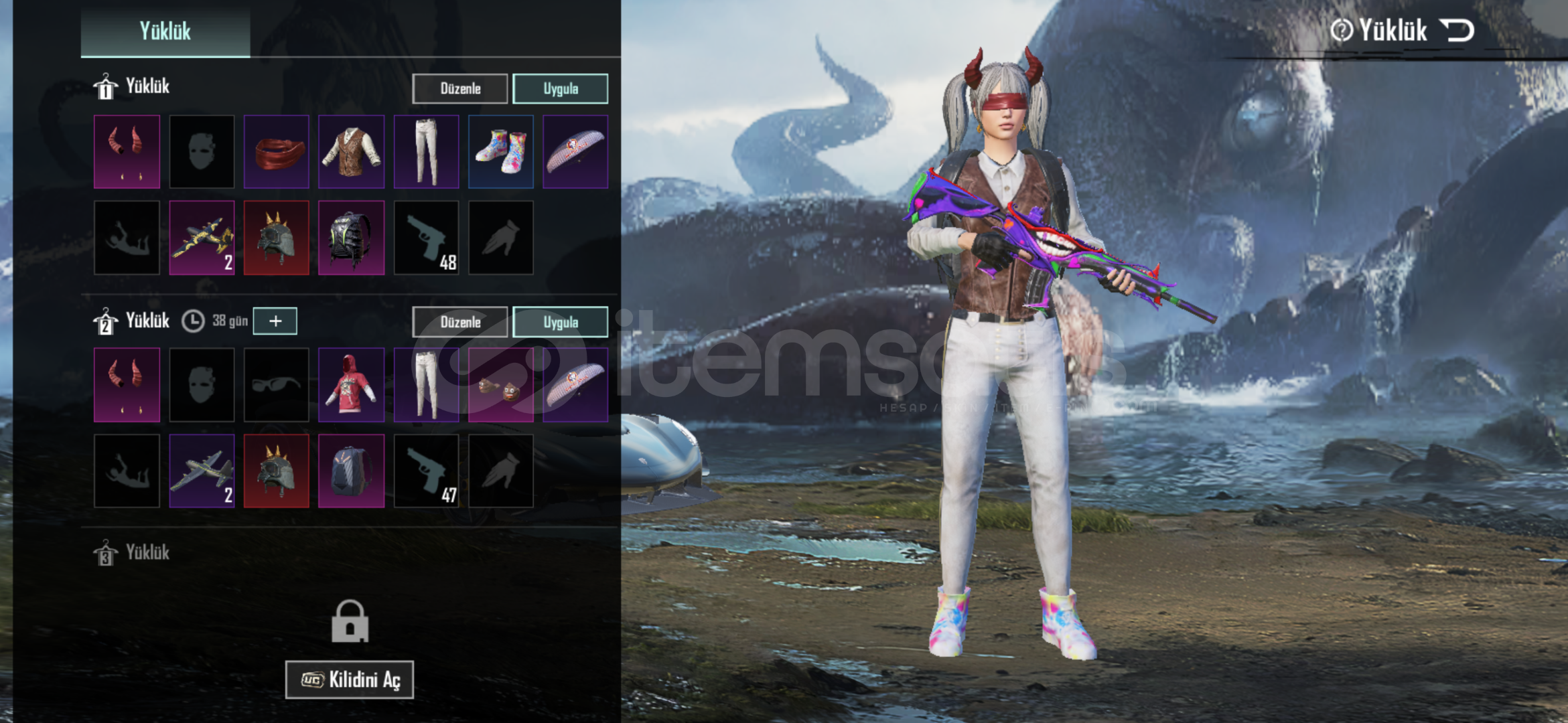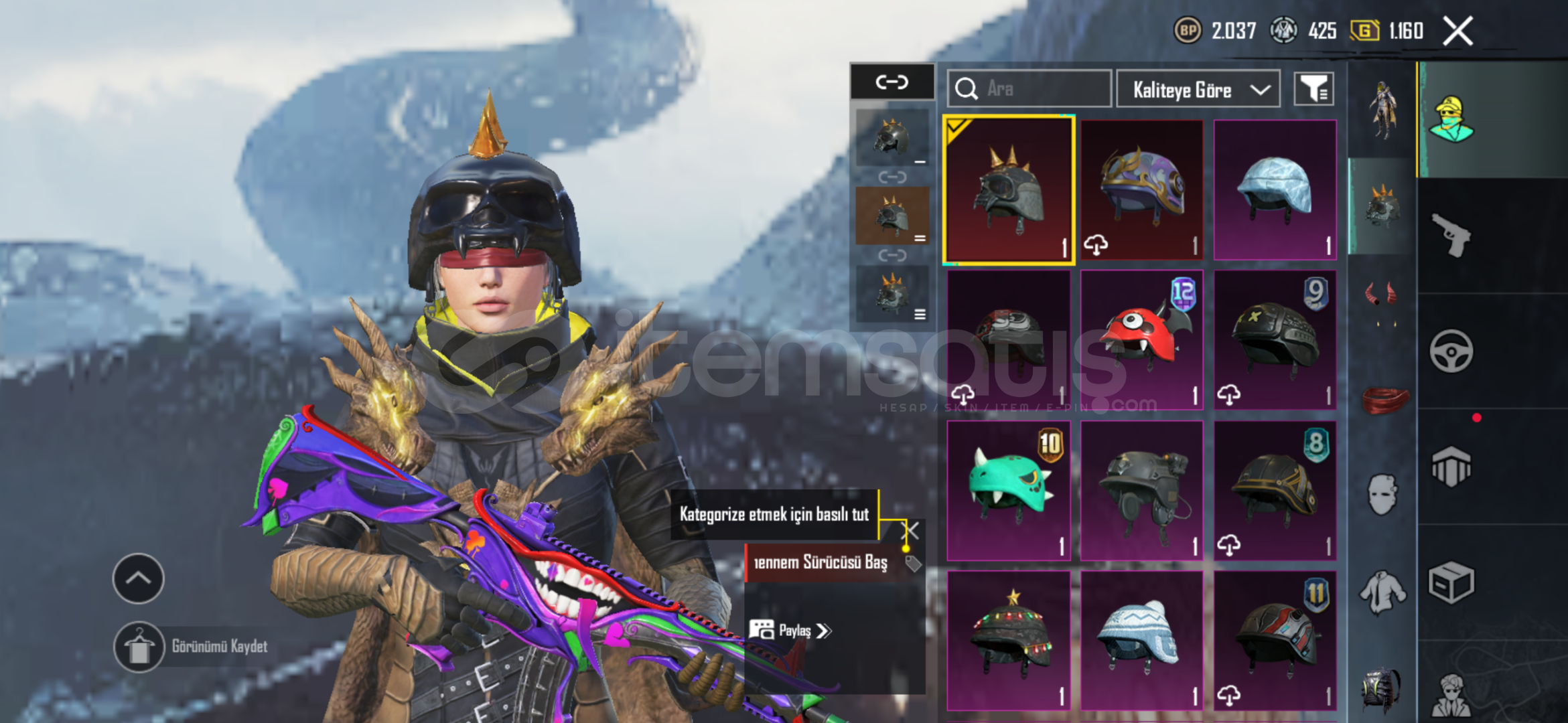 NADİR TERTEMİZ HESAP161 DESTANSI 70 COLLECTİONGhidorah setiMumya setiVampir setiJanti seti Dikenli kaskŞeytan boynuzuKovboy ceketiKorsan ceketiCezalandırıcı ceketiİşgalci cantasıŞakacı cantasıDüş yargıcı cantasıDaha sayamicağım kadar kıyafet,kask,silah var..Maska m416 MAXXBuz diyarı m416 MAXXBuz diyarı akm MAXXBuz diyarı uzi MAXXGodzilla kar98 maxxVe daha fazla silahS7 FAT...
