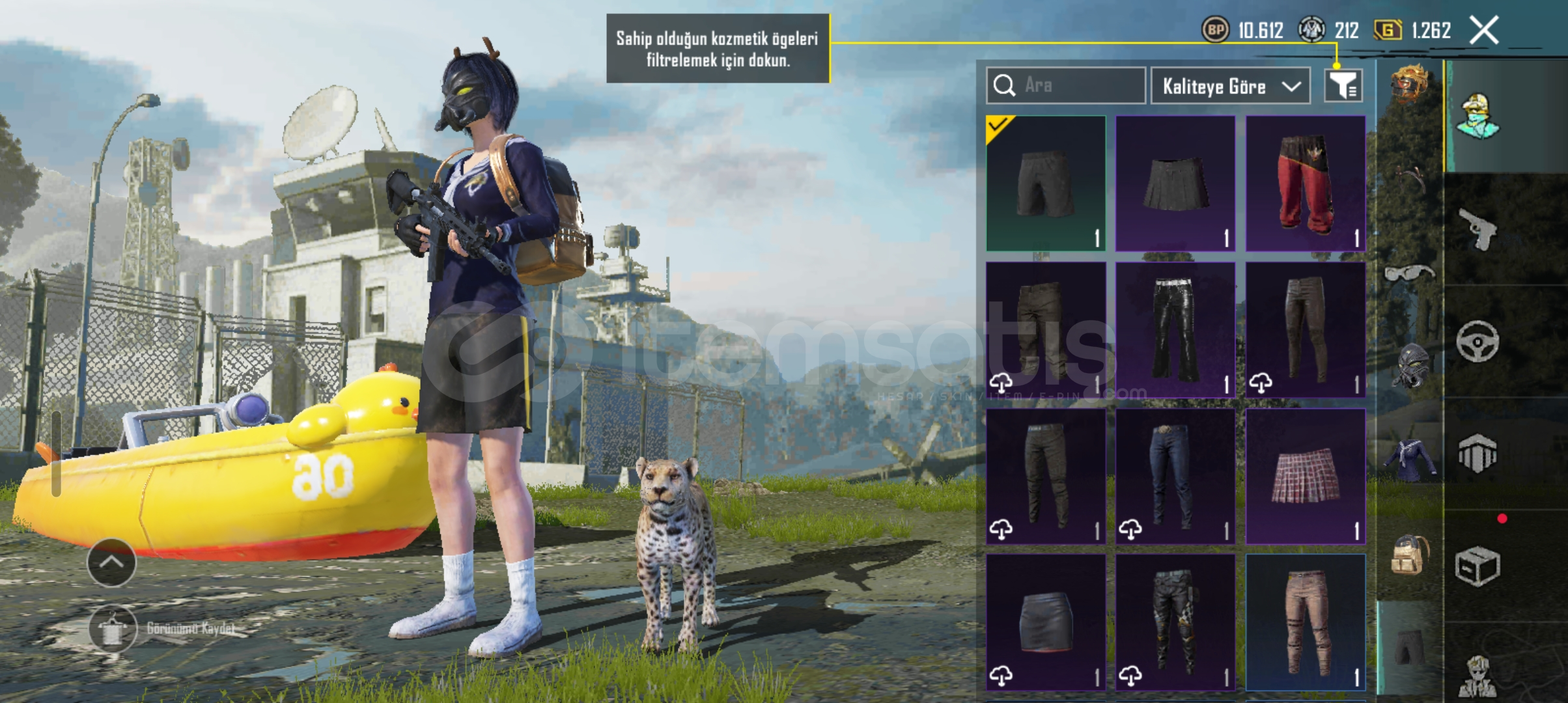 Hesap mükemmel bağlar tertemiz işgali maske var goz bandaj var dansçı seti var özel duruş emojili set var guzek emiciler var guzel 3 tane çanta siyah şort daha ne olsun leopar yoldaş var 2 tane de yukseltirilebilir hesapta 1 tane de malzeme var dm gelin.
