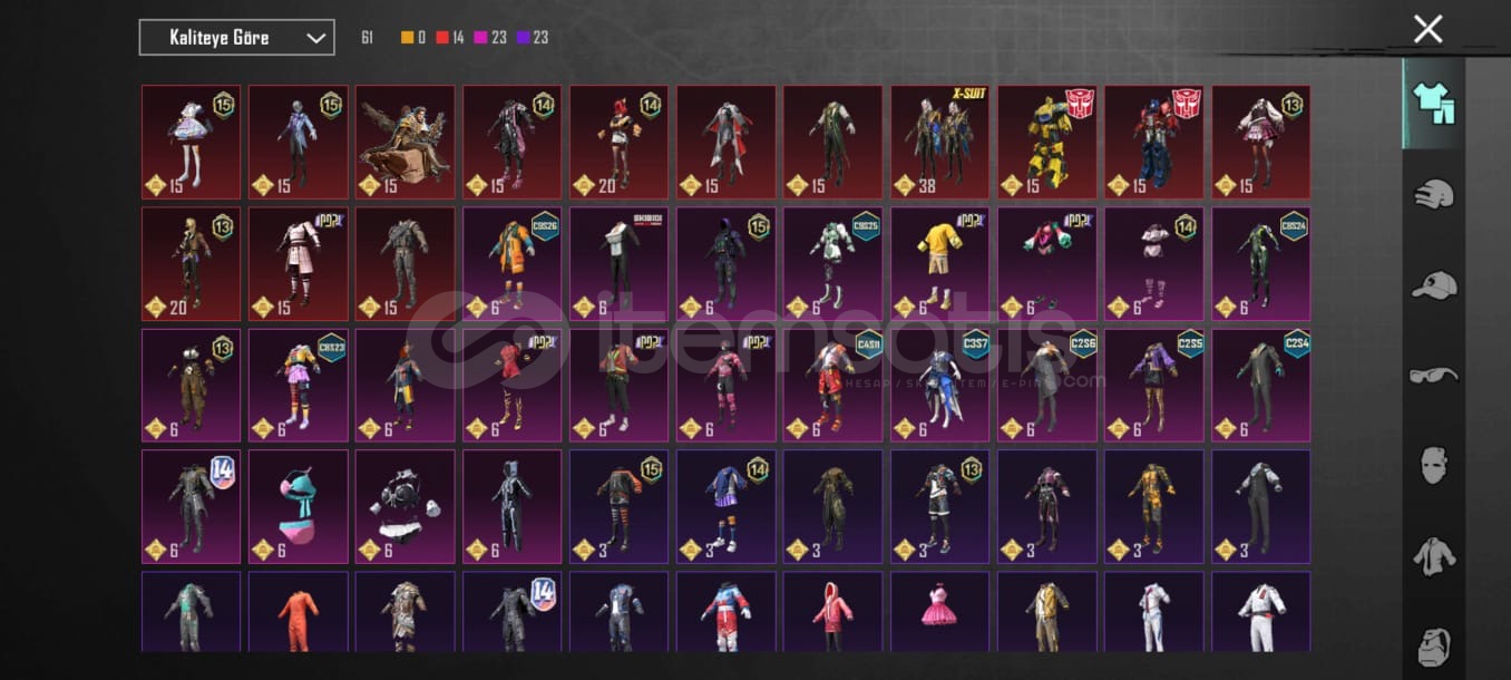 s4 saç m762 - 3 sv m4 - 5sv AWM - 4sv ump - max scar - max komutan seti, crew üstü ve ananas seti ful x suit 3 yapılabilir