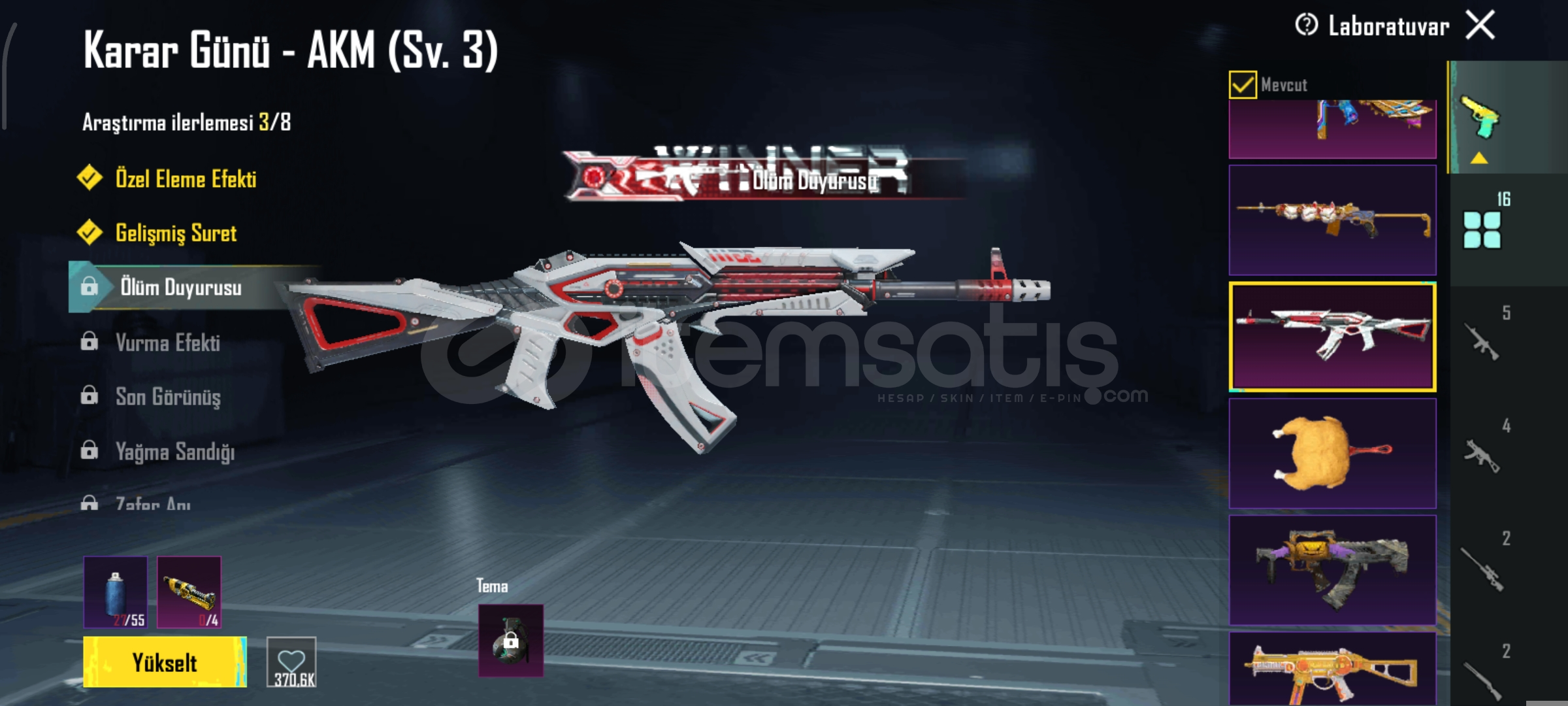 Pazarlik Yapılır2 Malzeme alacak para+ parçacık var16 yükseltilebilir silaUmp 2 levelAKM 3Vector 1Thompsin 35li pompalı 1S12k 1