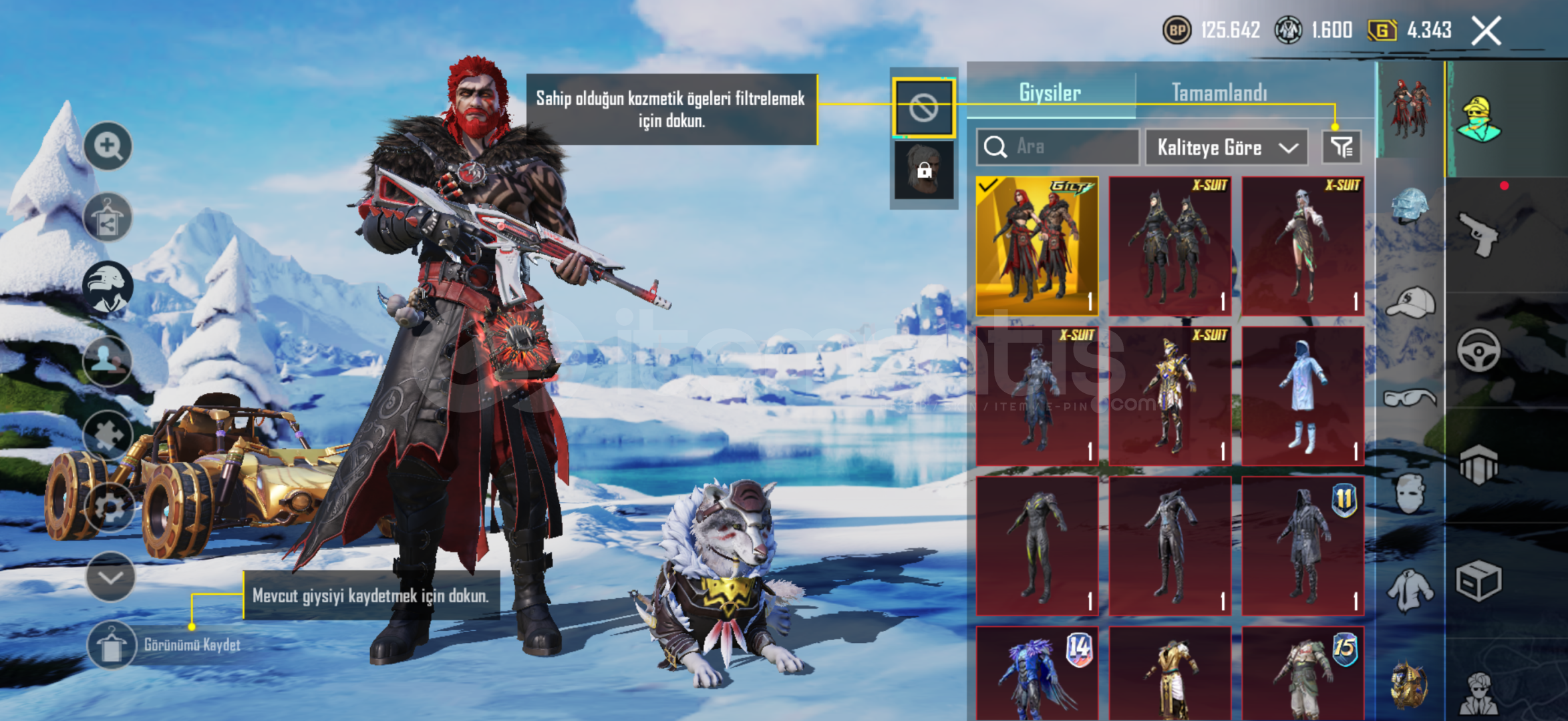 Hesapta;Vahşi Gaydut Seti(En iyilerinden)4 X Suit Firavun 3 yıldızPoseidon 2 yıldız diğer ikisi 1 yıldızm4 buz fullbuz ump 4Karar günü akm 4 Yükselen Ejderha mg3 4Şirin kedi kar98 full Lider Panter dbs fullOrman Baskını groza 44 âdet yükseltilebilir araç varHesapta kurt ve ayı yoldaşı var