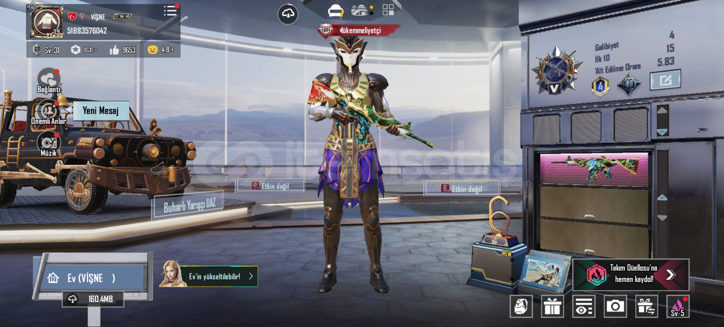 Firavun ve anukra seti var xsuit, 4 tane ölüm duyurulu silah var m4,ump,uzi,p90, 9 tane yükseltilebilir silah hesap seviyesi 79