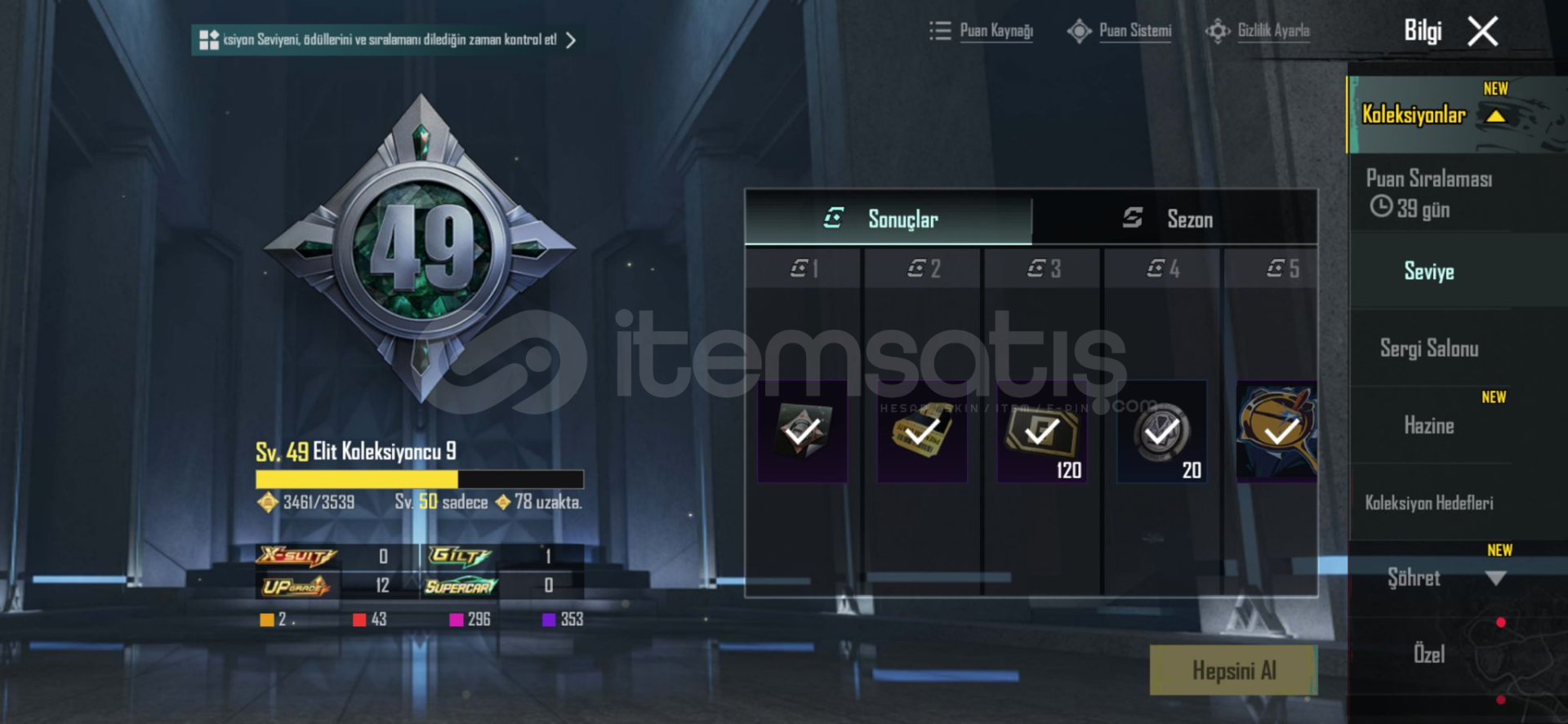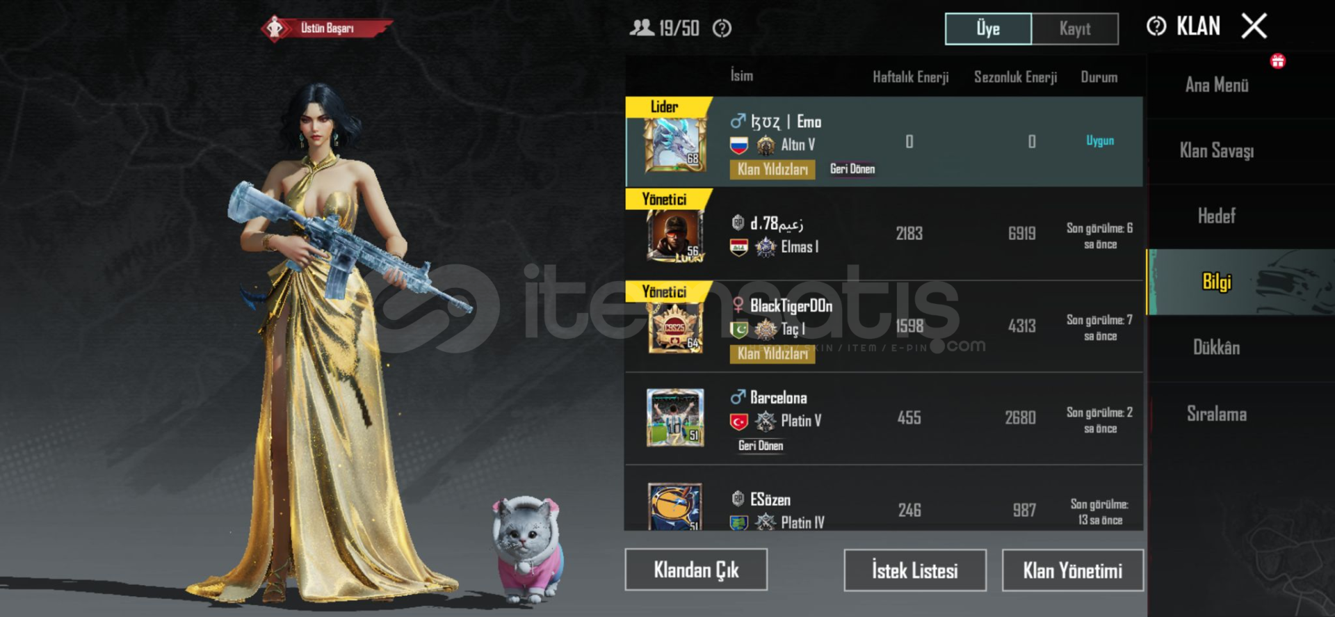 Hesapta 5 Sv Buz Diyarı + Buz Diyarı kask 1 Adet NİHAİ Set 1 Adet nihai Ayakkabı 43 Adet Kırmızı Öğe 296 Adet Pembe öğe 353 Adet Mor öğe Vardır Toplam hesapta yükseltilebilir silah 12 ADETTİR 5 SV KLAN HESAPTA ÜCRETSİZ BİR ŞEKİLDE VERİLİCEKTİR HESAP 16.SEZONA AİT AÇILMIŞTIR PAZARLIK OLMAZ SON FİYAT BUDUR HESAP 68 SV DİR