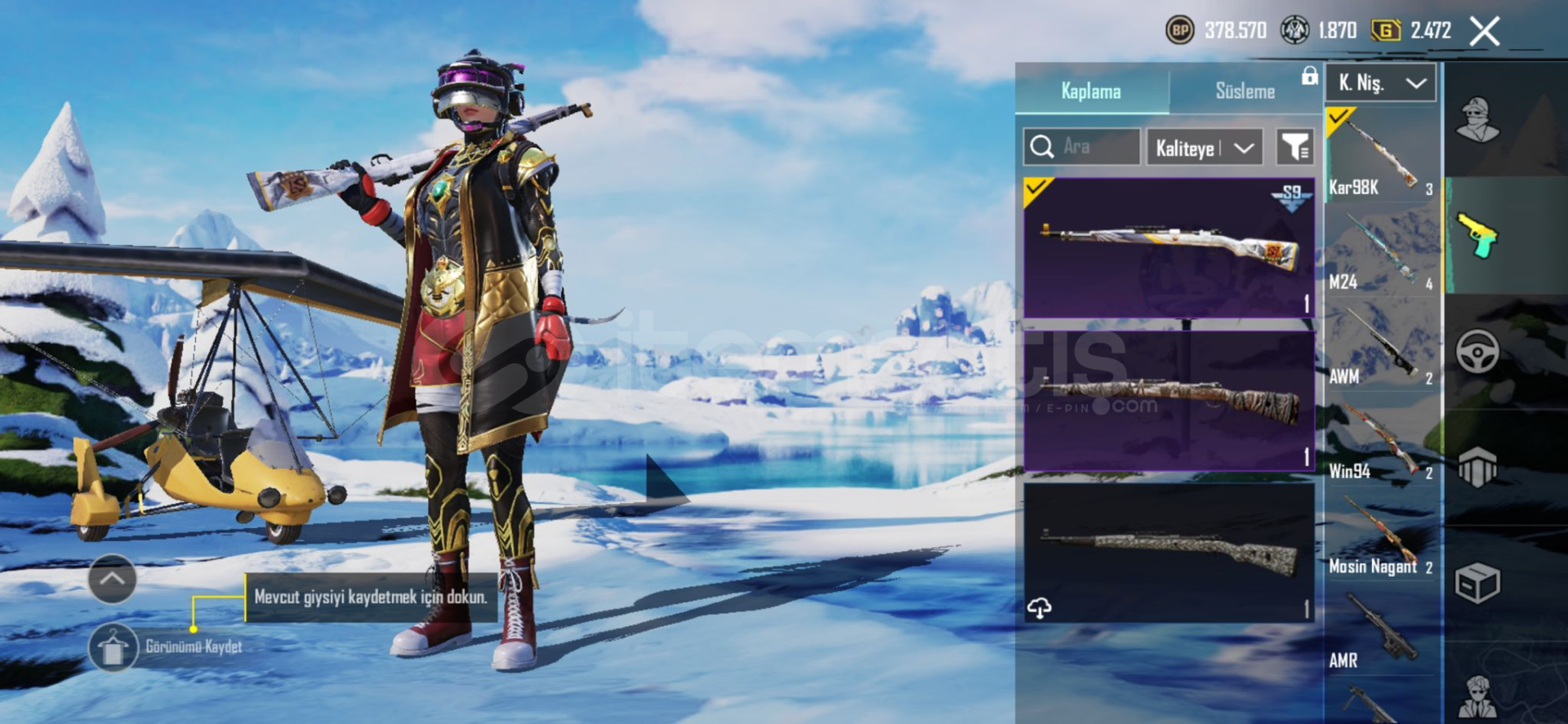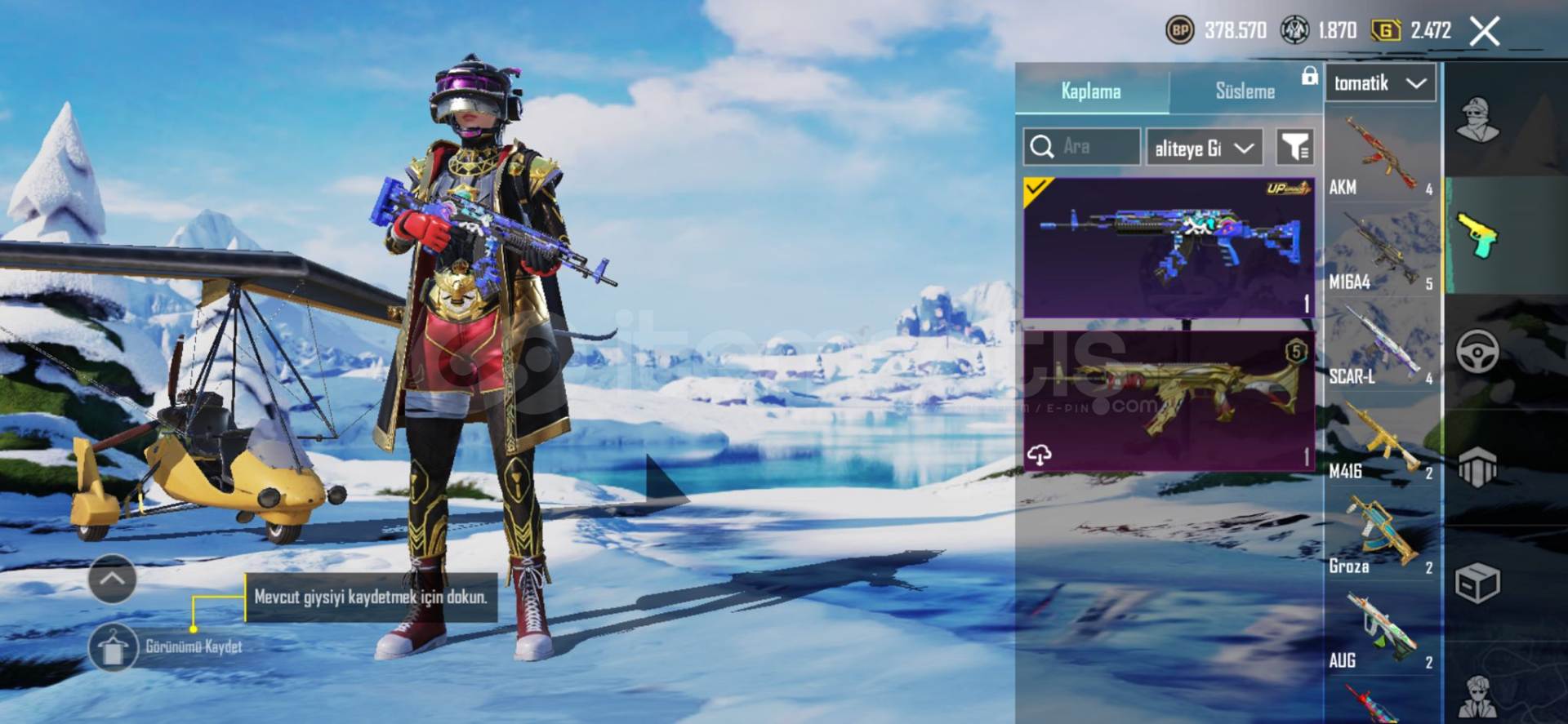 pubg hesabım orta hallidir popüler kaplamalar silah desenleri çok yoktur m762 midilli deseni vardır 4 seviye ve altın kaplama m4 vardır hesap 67 seviyedir çoğu silahın deseni vardır genellikle royale pass satın alınmıştır en yüksek kademe as otoritesidir