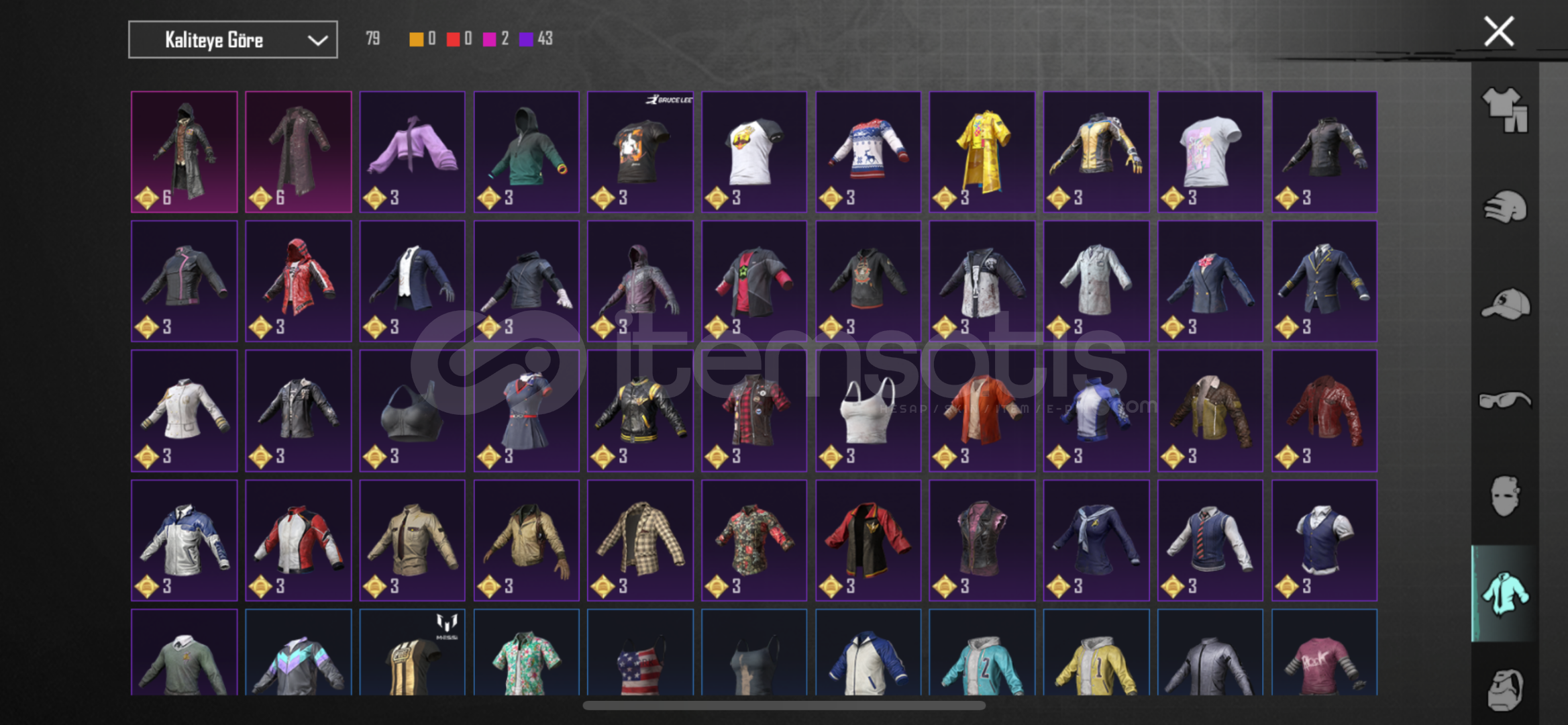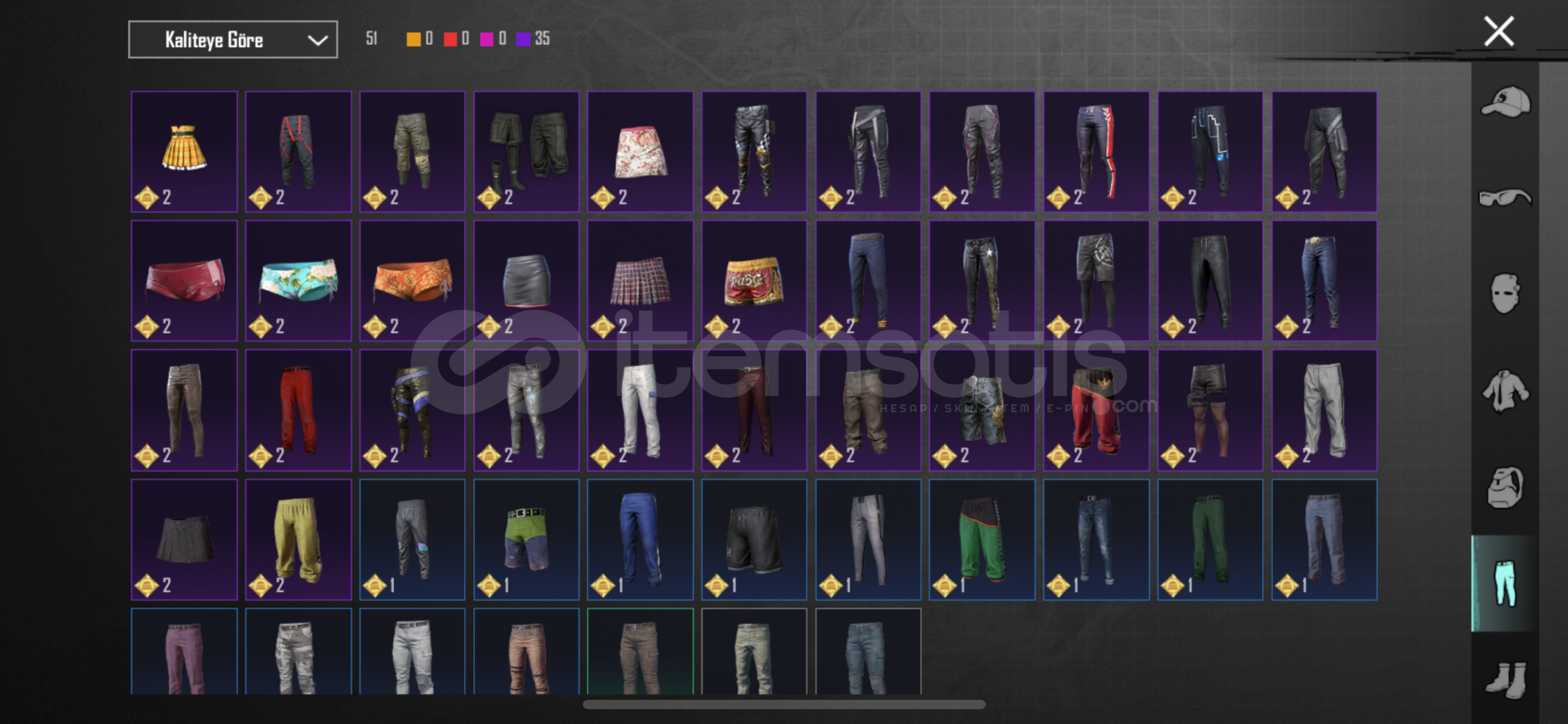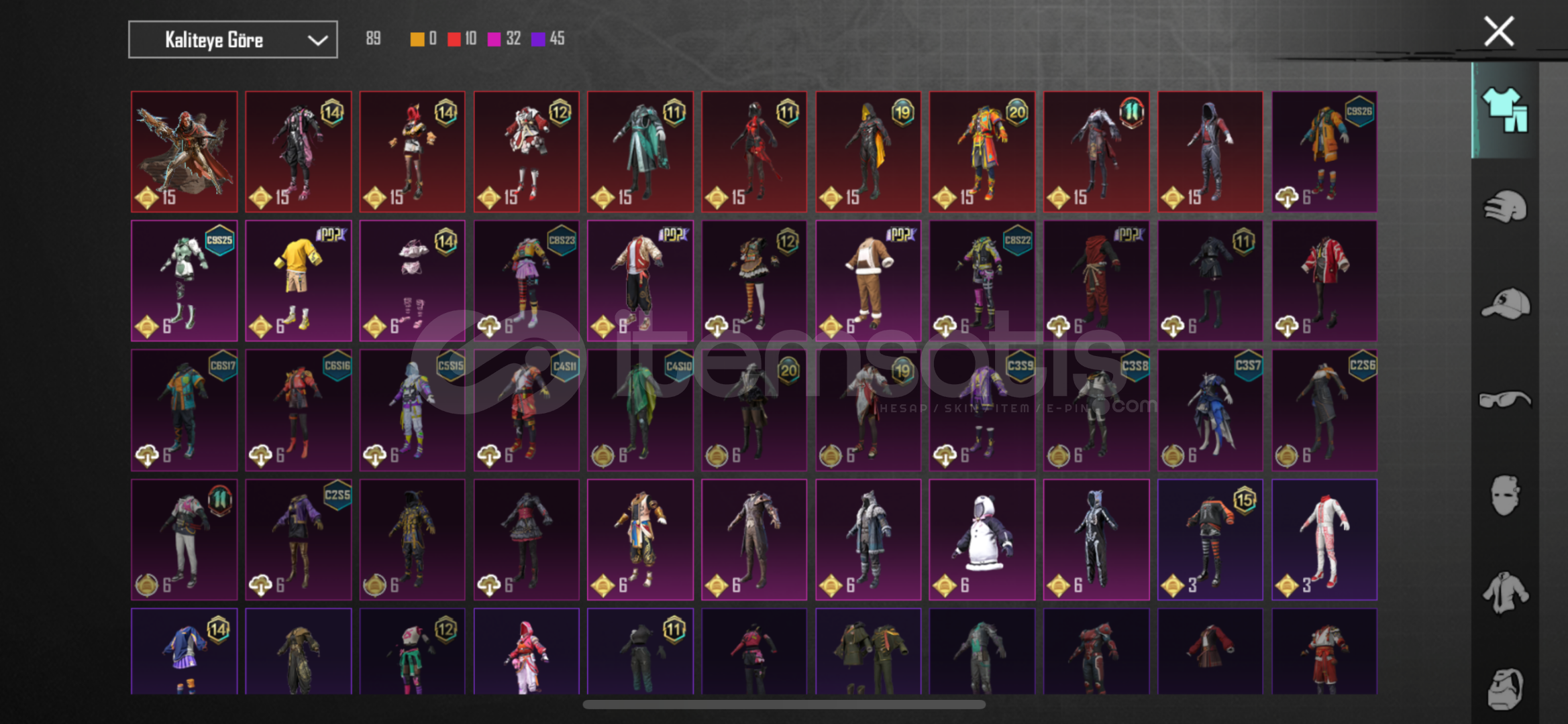 S4 yüz, S5 saç vardırbuz M4(3lvl), zincirli cehennem uzi ve toplamda 8 adet YÜKSELTİLEBİLİR toplamda 61 adet silah skimi vardır.kombinlik bir sürü set mevcuttur.Tek ve temiz Bağdır.Crew, Ananas, Komutan üslükleri - S2 maskesi mevcuttur.