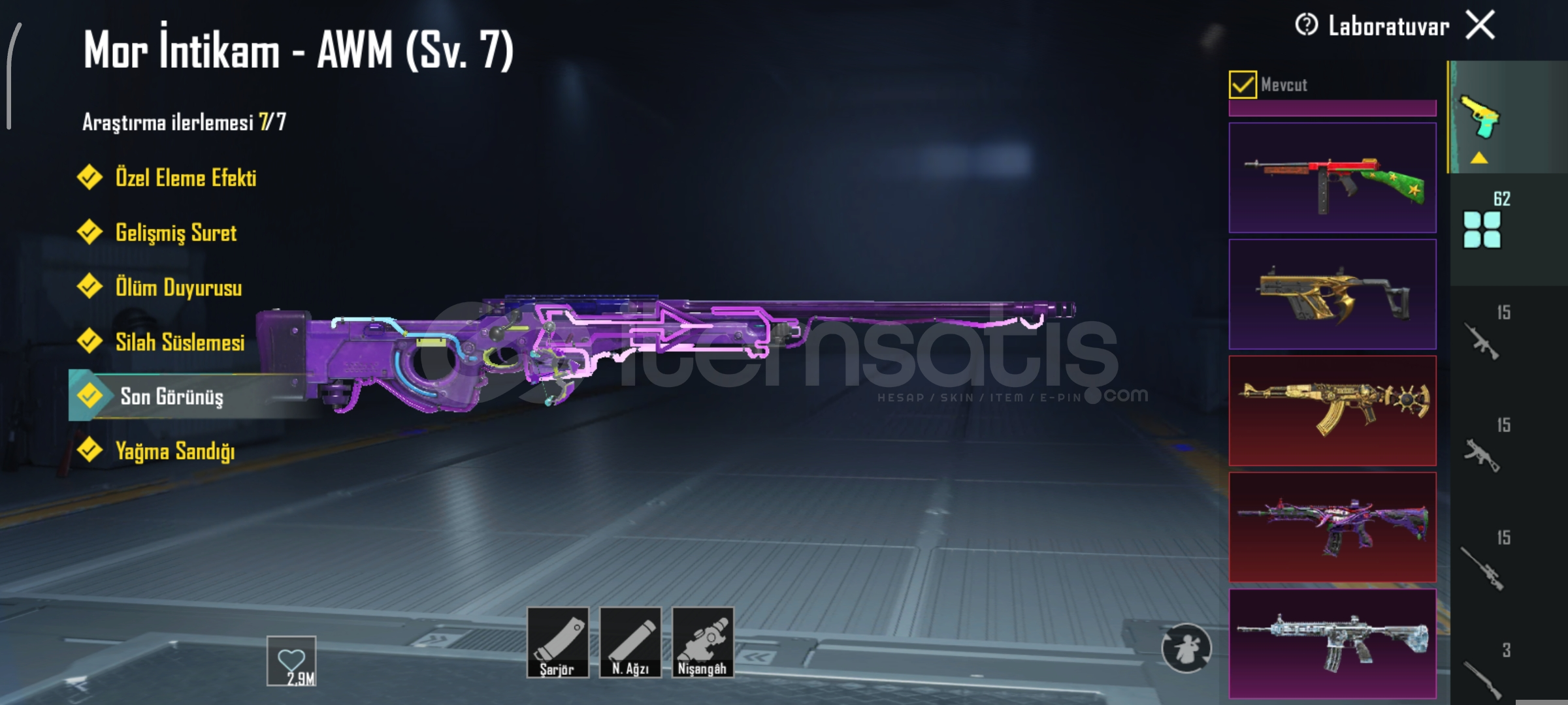 19adet ölüm duyurulu silah var 4tanesi 7seviye ,2tanesi 6seviye