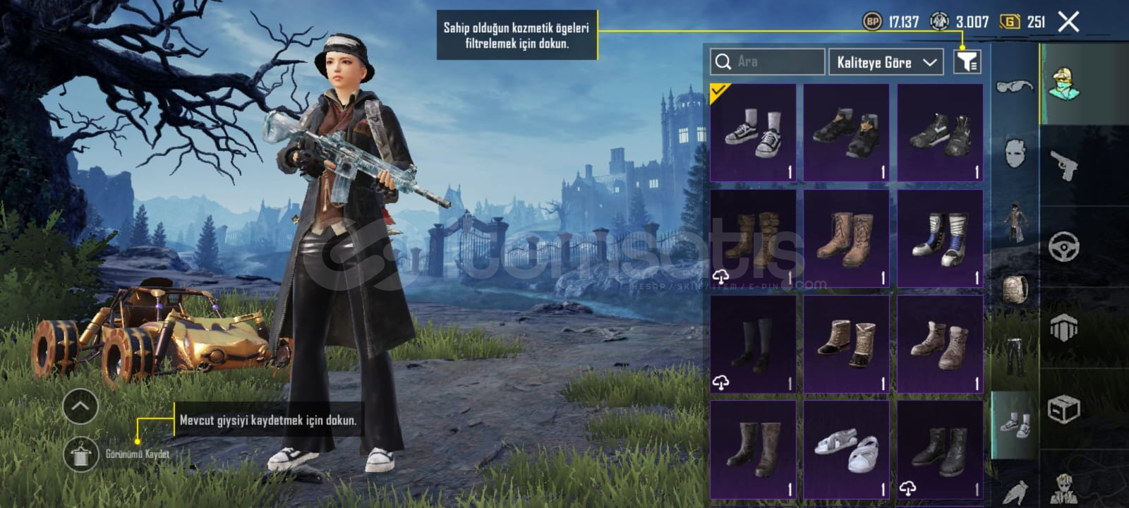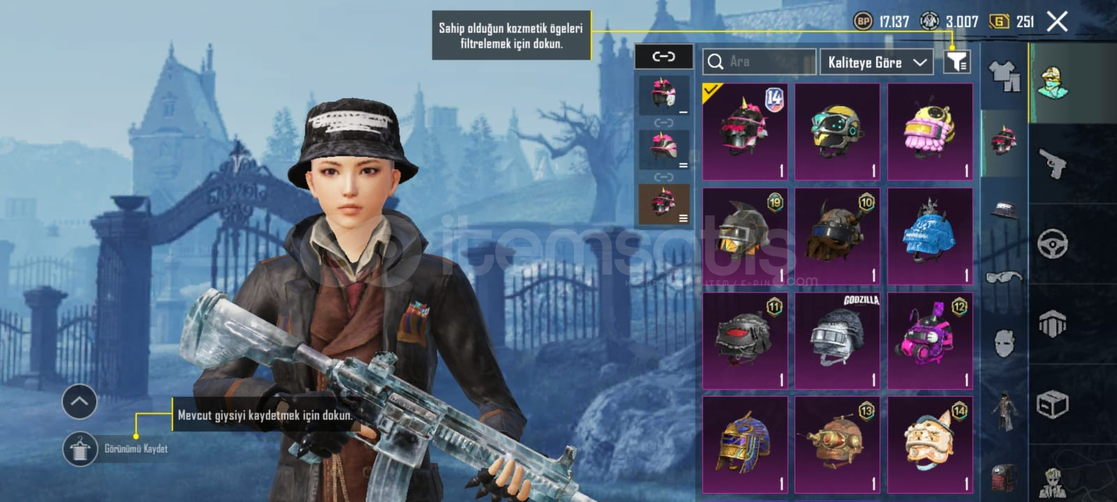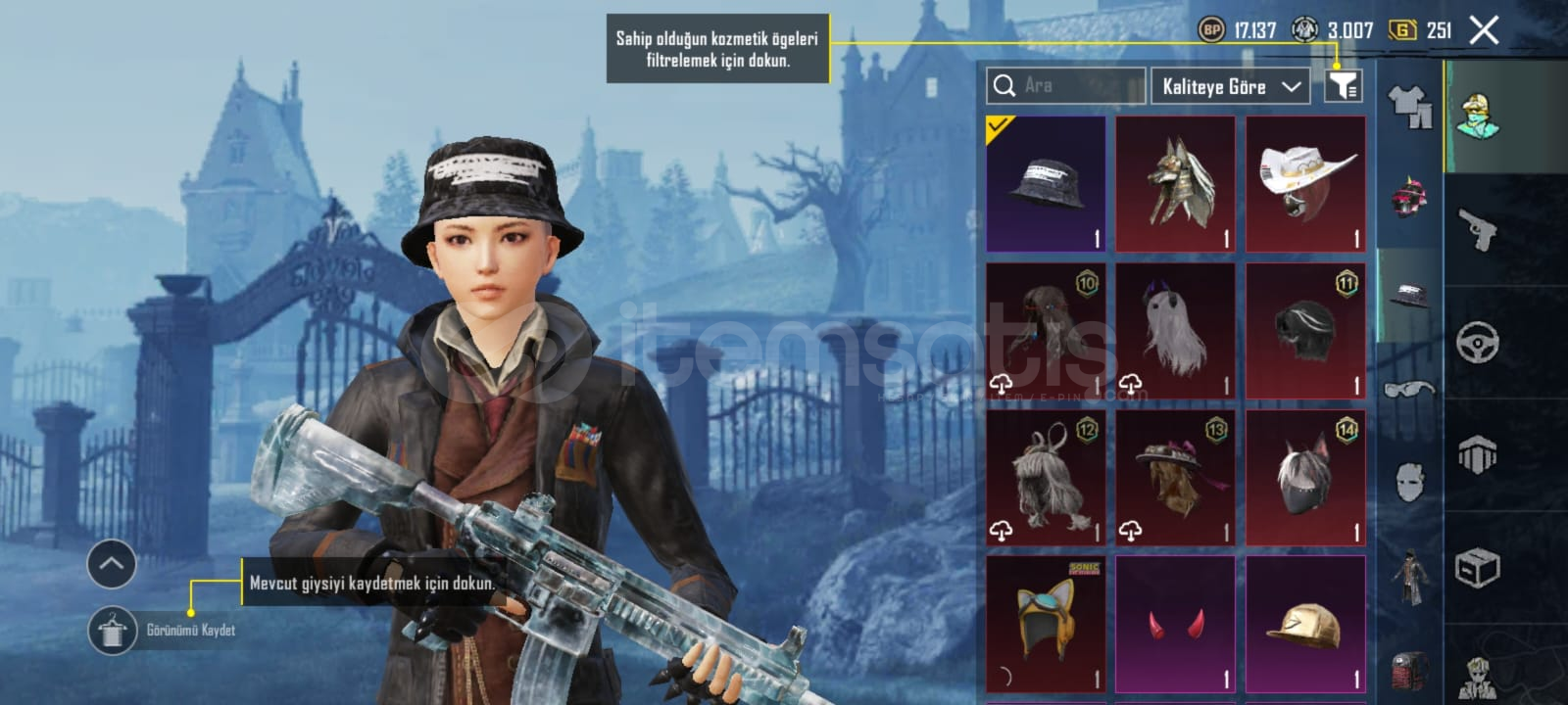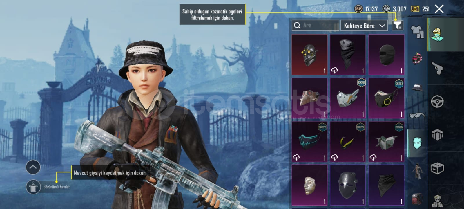 Buz diyarı 4svMama tabancası scor ölüm duyurusuBıçak ölüm duyurusu Kan paraziti dp-28. 2svKod kırıcı AKM 1svDikenli Şafak M16A4. 2svMidilli m762 1svYamalı tavşan mk47 1svŞirin kedi kar98 1svFiravun kudreti m24 1svSteampunk. Thompson 1svAltın önce p90 1sv3 adet destansı amblem2 materyal