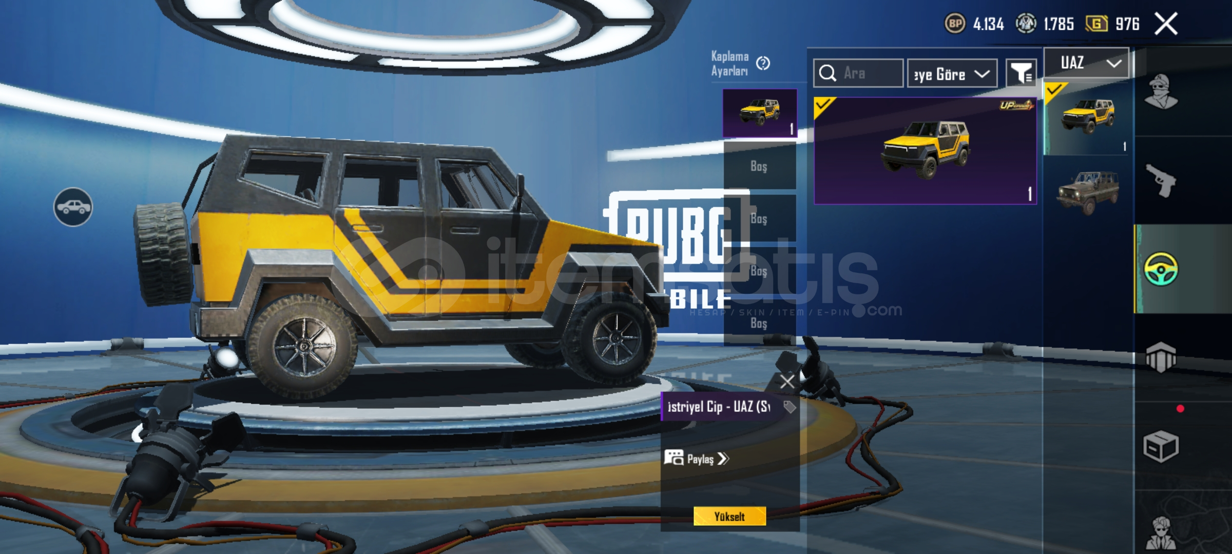 +3 buz diyarı 2 yükseltilebilir araba tekne minibüs kaplamaları da var bir ton kıyafet ve silah kaplaması da var hesap satılıktır