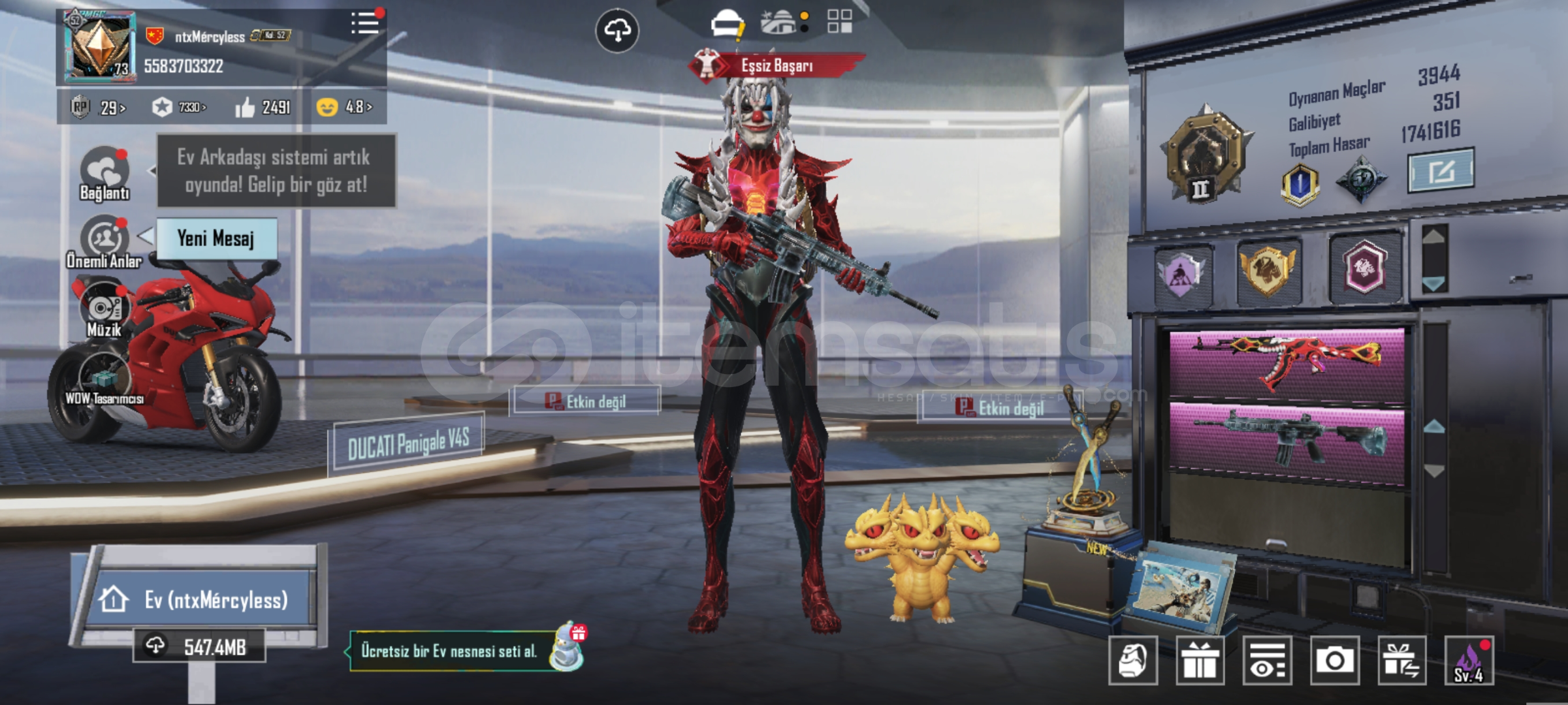 2 seviye buz diyarı. 49 destansı dücatti motor. Firavun çanta kızıl ötesi nihai seti ve çantası. 74 seviye.