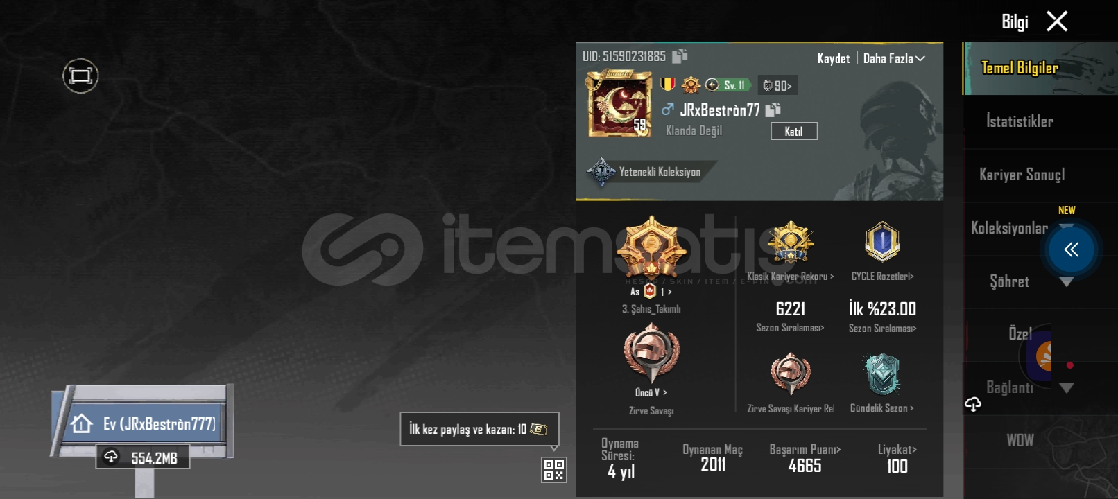 Hesabımız videosu https://dosya.co/o7dk21u862mu/screen-20260102-211243.mp4.htmlaldım diyene hayırlı olsunhesabın garanti veya iadesi yokturhesapta bunny vardır groza skini vardır havalı görünüyor çantalardan iki Üç tanesi nadirdir bu fiyata başka bulamasınız hayırlı olsunayreten devir yoktur ölü bağdır risk çok azdır ama vardır aldım diyene hayırl...