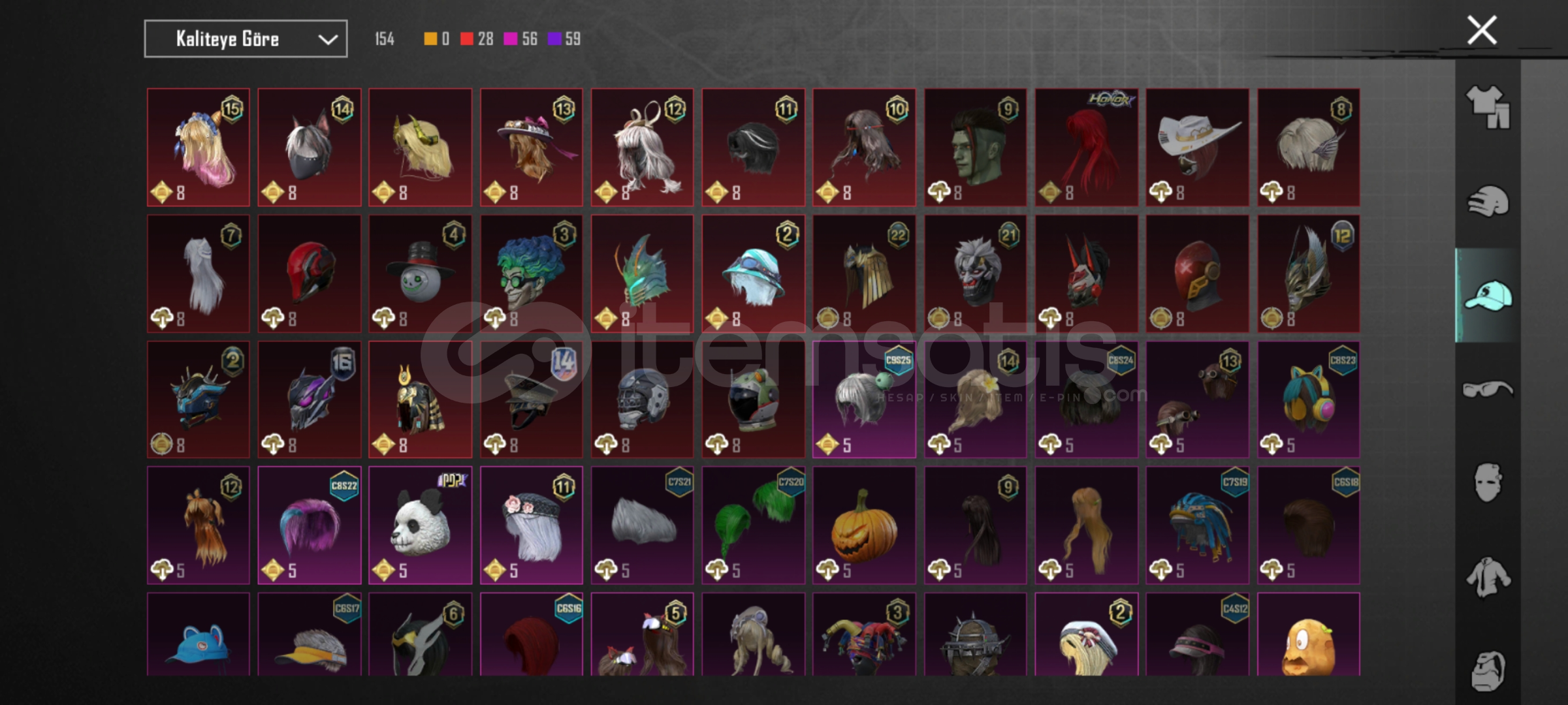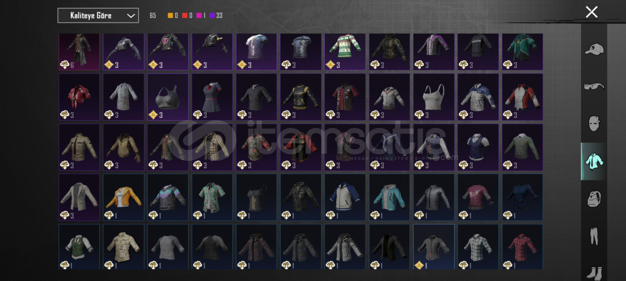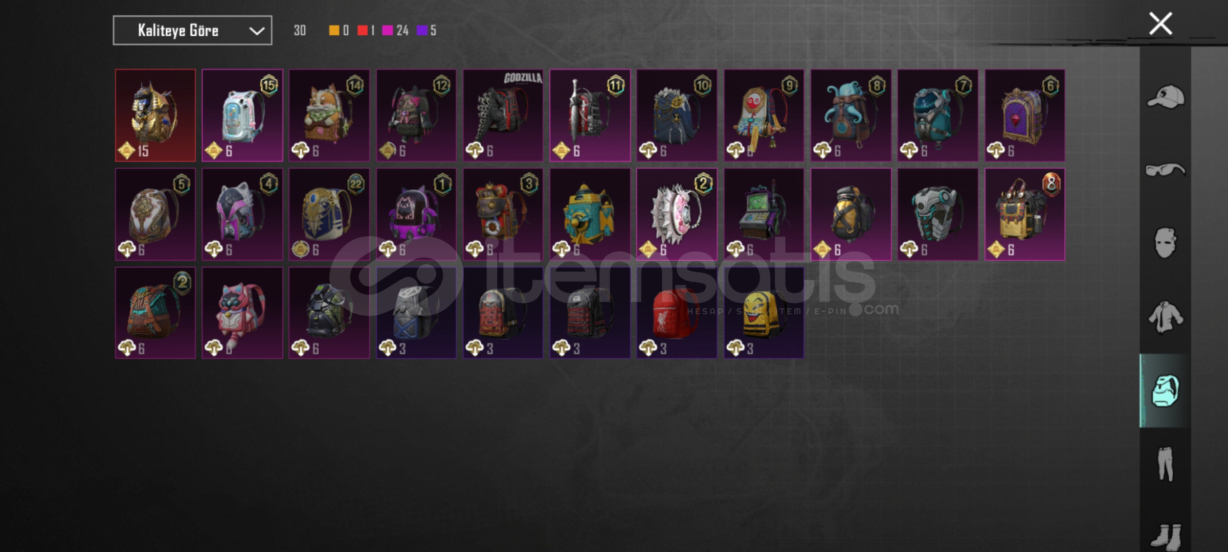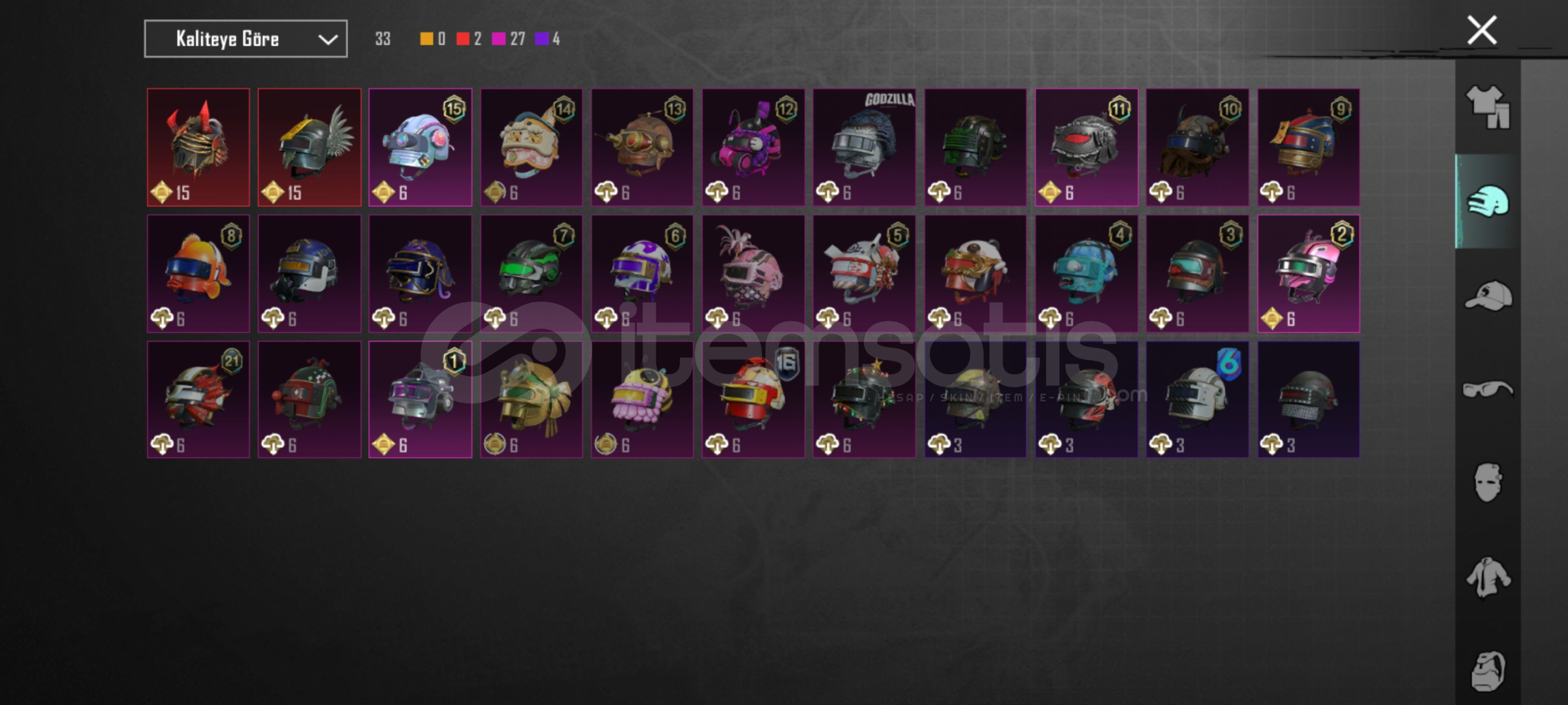29 tane yukseltirilebilir silah var.ump,scarL,m762,mk14,s12K olum mesajlari acik awm 3 seviye. Bir tane iki tane ZirhX var biri 2 svy. 6 tane destansi amblem 130 premium sandik kponu var 726 tane ugurlu para var
