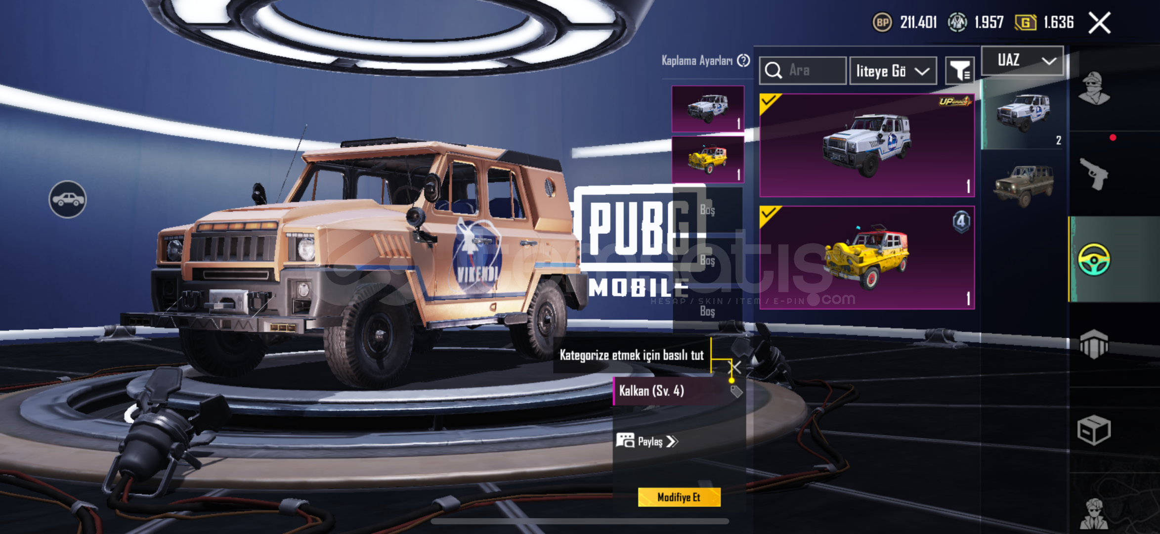 Öncelikle saleymun aleykum hayırlı işler ogrenciyim motor almak için satıyorum hesap ful iyi kombinler var hesapta dodge spor arac kalkan uaz 4 seviye torosda 5 tane desen var kırmızı öğe canavar kamyon var toplamda 21 tane yukseltilebilir var bunlardan 5 tanesi olum duyurulu artı hesapta 5 materyal var hesap ın populerligi 1 m hesapta fatih çercevesi destansı gosteris unvanı ve daha fazlazı iyi yani gercekten pişman olacagınızı dusunmuyorun
