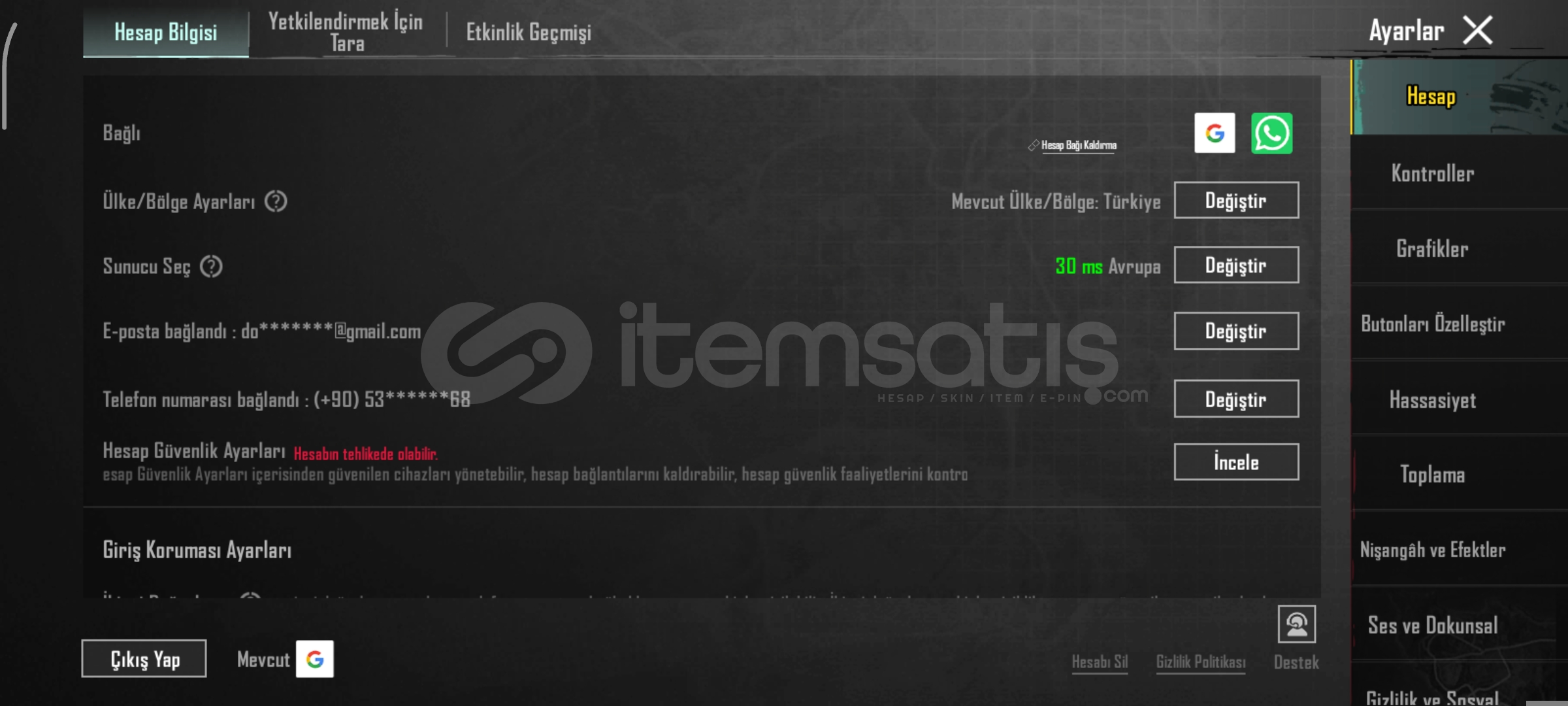 Kore hesaplarının satışı kabul edilemez, bunun sebebi Türkiye üzerinden giriş yapılamamasıdır.