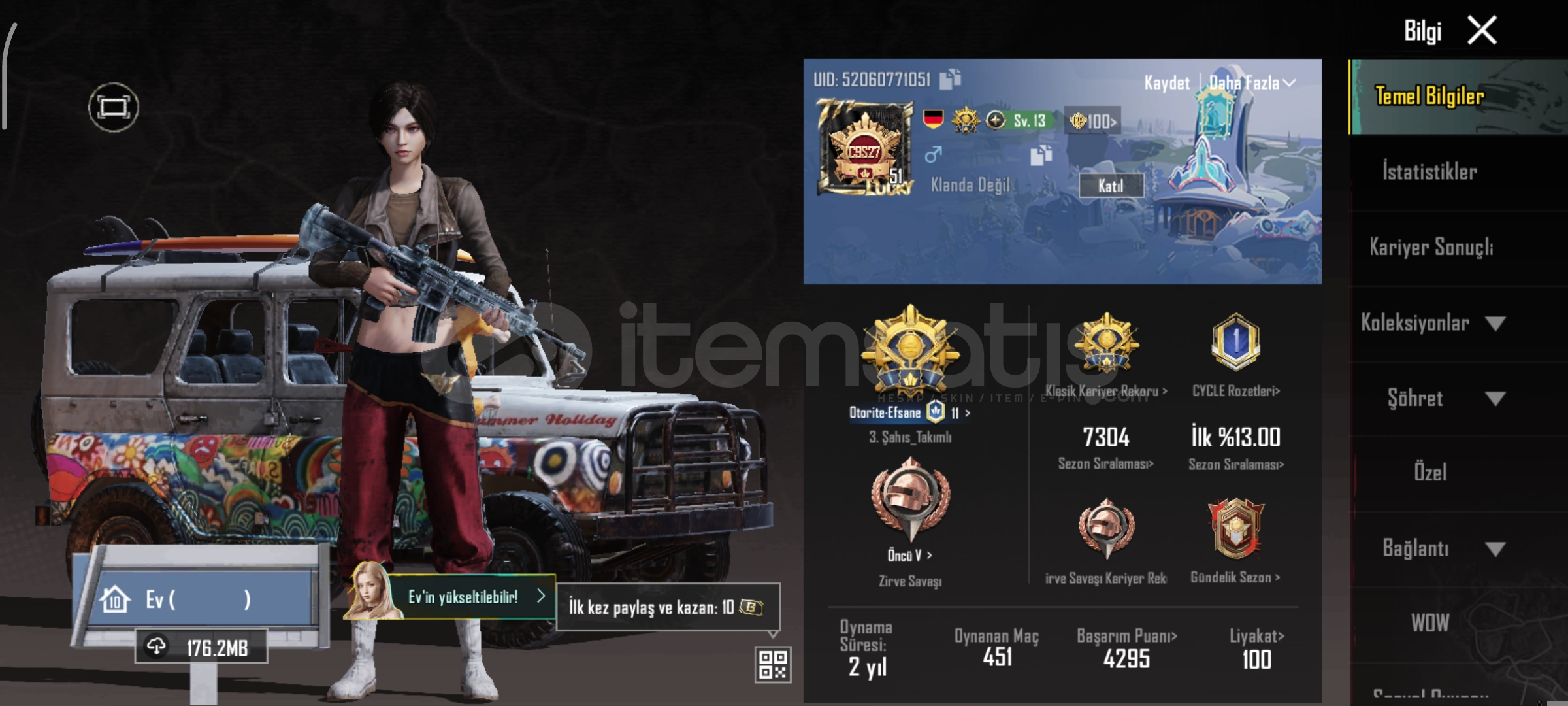 Tüm Bağları Verilcek 211 Seviye Dolu Hesap