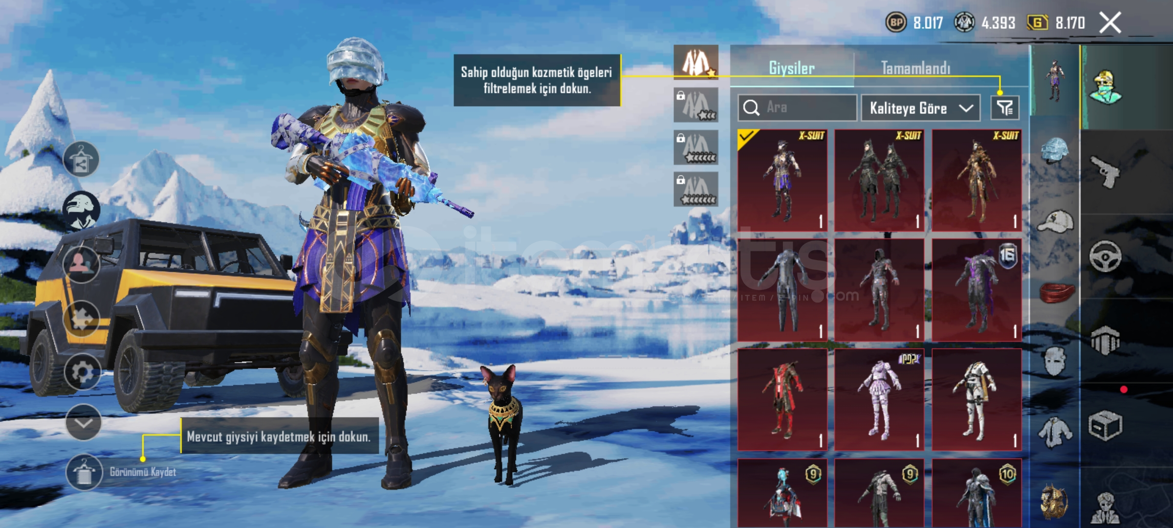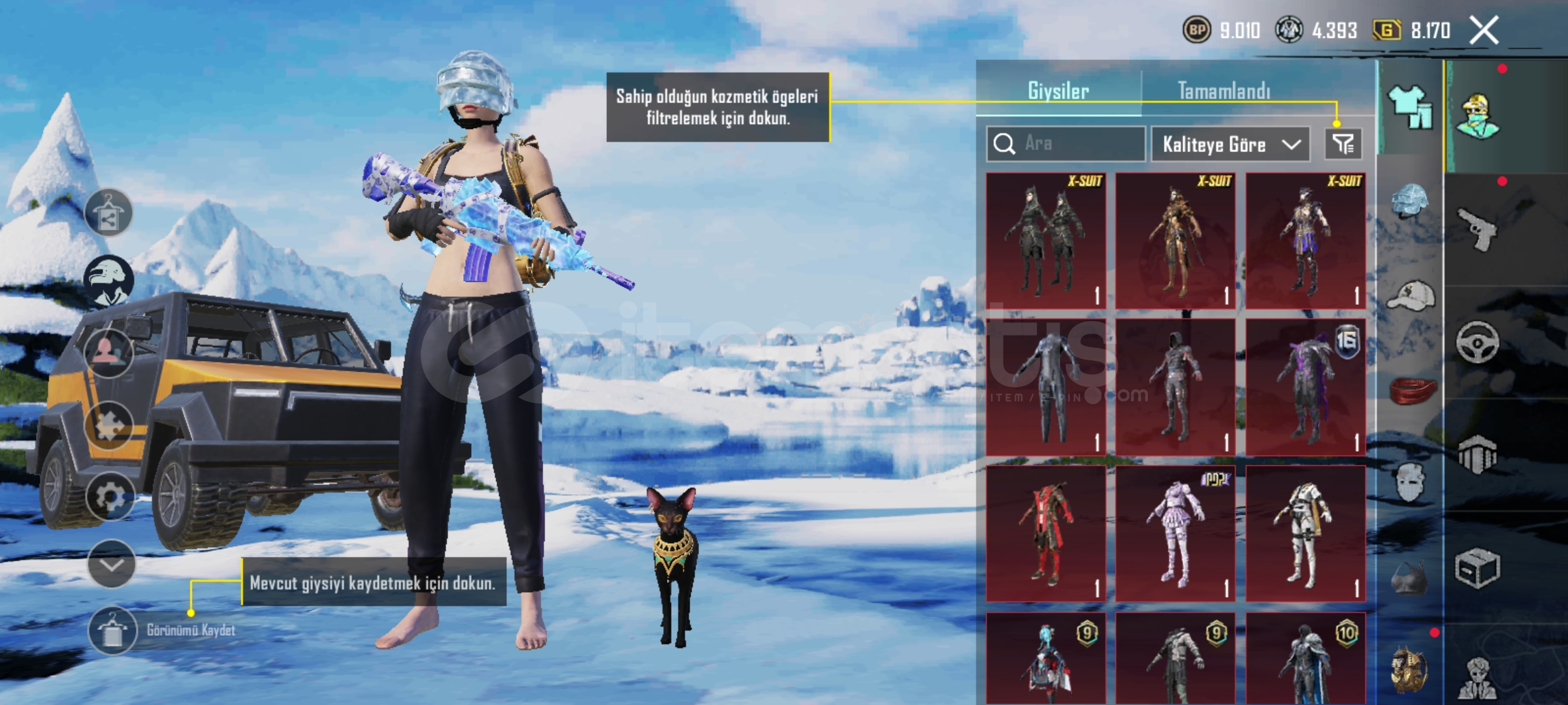 Pubg 3 x-suit bulunan güzel eşyaları itemleri olan değerli hesap baya para yatırılmış mumya m4 lü arabalı çok değerlı güzel hesap uygun fiyata