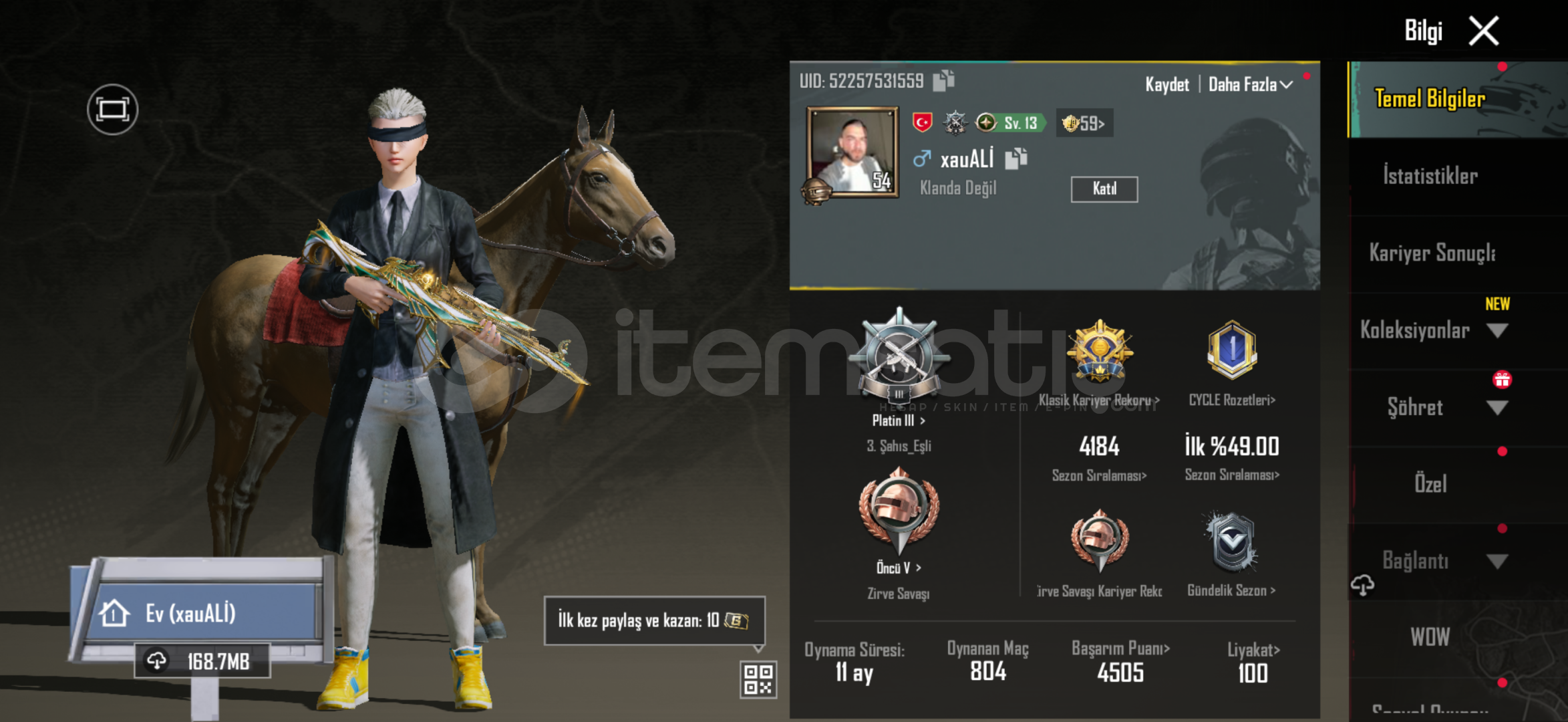 Videoda herşey var inceleyin konuşalım hesap tertemiz şüpheniz olmasın ıd den gidip hesaba detaylı bakabilirsiniz