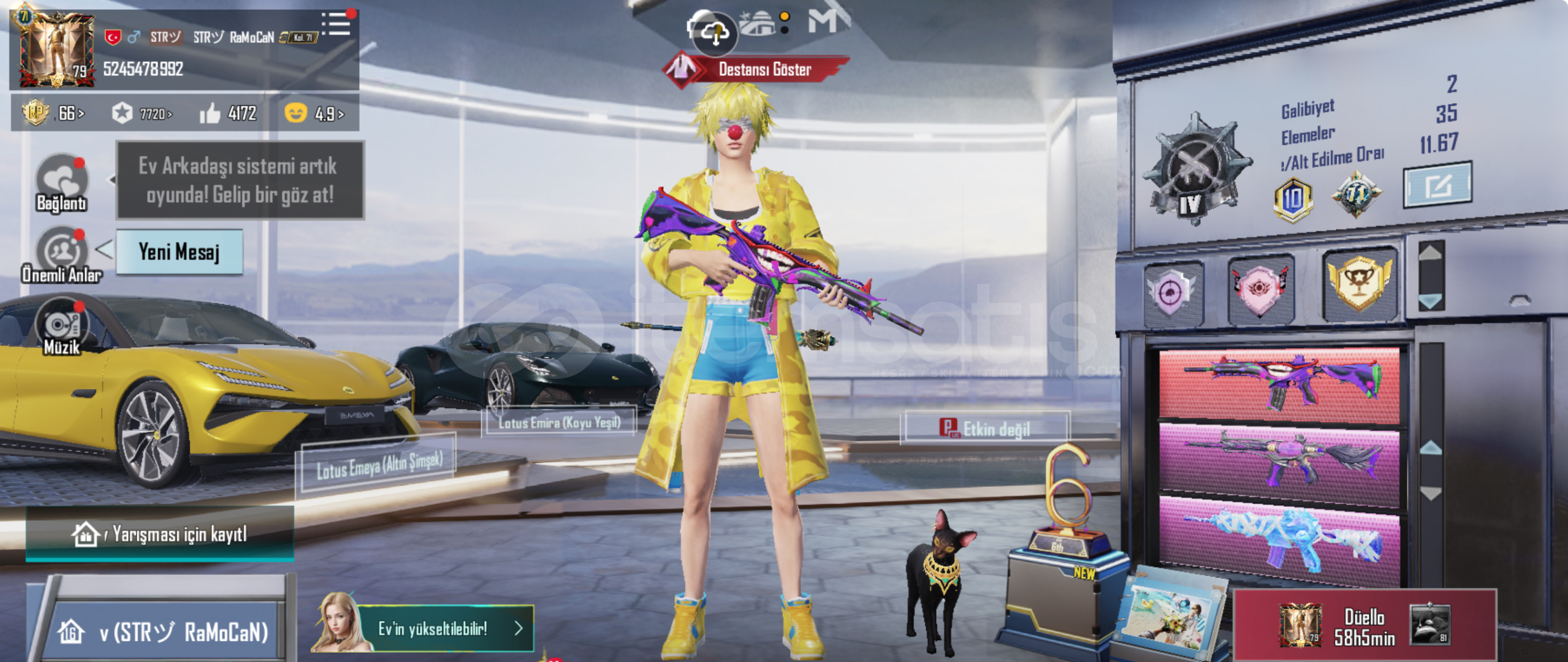 id üzerinden koleksiyon açık daha detaylı bakmak istiyorsanız buyurun hesabımı id em üzerinden bakabilirsiniz emek hesabıdır oyunu bıraktığım için satıyorumİD: 524 547 899 2gece vardiyasında çalıştığım için gündüz yatıyorum hesabı almak isteyen arkadaş akşam 6 dan sonra alsın alıcısına hayırlı olsun ş...