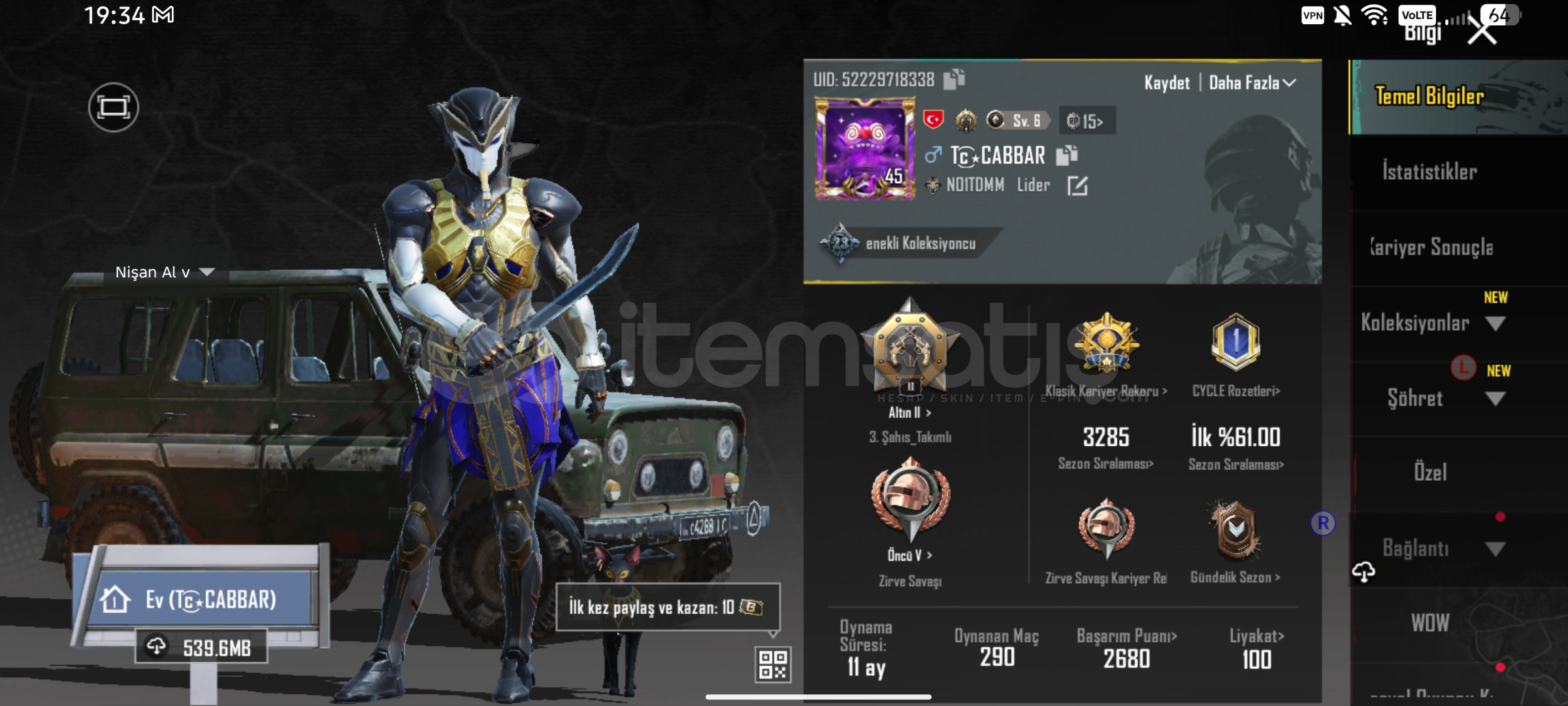 HESAP 45 seviyedir hesapta firavun ve ruh kedisi vardır 1 adet yükseltilebilir silah 2 destansı kıyafet vardır firavun 1 seviyedir hesapta numara ve e-posta bağlıdır alımınızdan sonra sizin üstünüze bağlanacaktır aldıktan sonra size hemen teslim edeceğim müsait İSEM alan kişiye hayırlı olsun