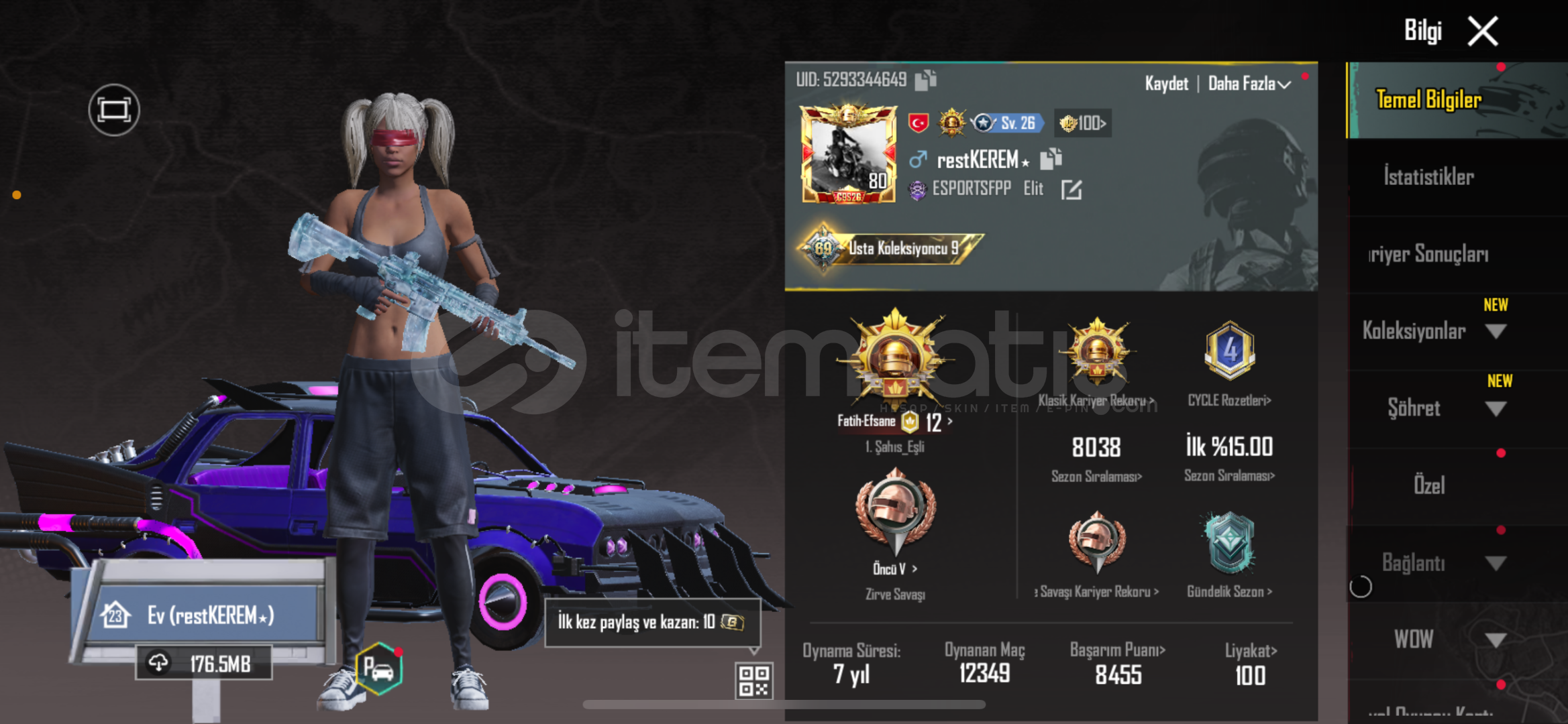 69 koleksiyon159 destansı1 xsuit4 nihai set35 silah / 16 olum mesajlı4 silah fulScarl ve m762 de ful eklenti varHesap form geçmişi yoktur Acil satılık yeni alıcısına şimdiden hayırlı olsun :