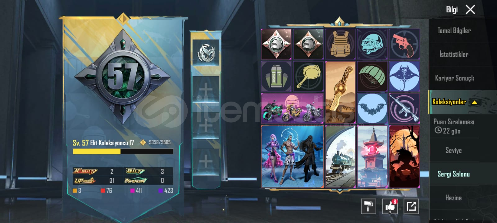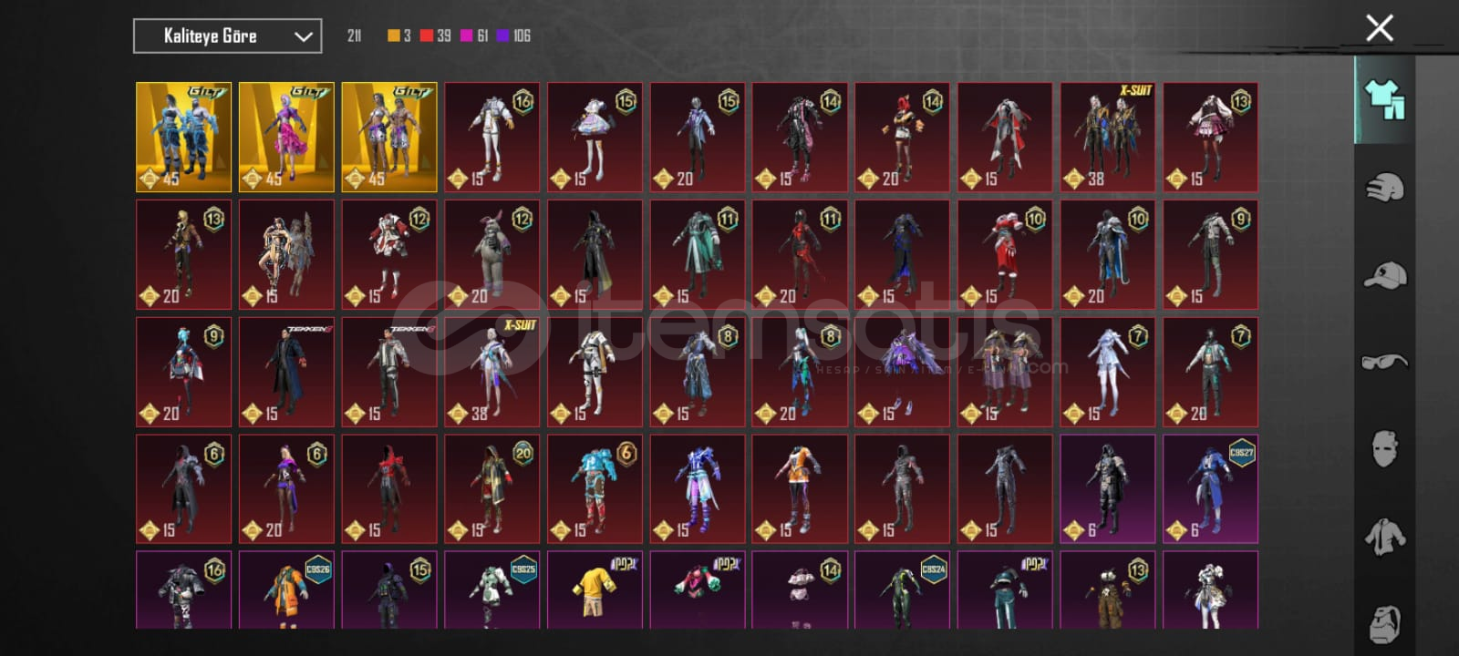 3 nihai set (silahlarıyla birlikte)2xsuit31 yükseltilebilir silah skiniBuz diyarı m416 6.seviyeUzi buzul çekici 5.seviyeAKM obur tavşan 4.seviyeThompson zarif leylak 3.seviye maxDaha niceleri isteyene videoda atılır(Ciddi alıcılara indirim vardır)