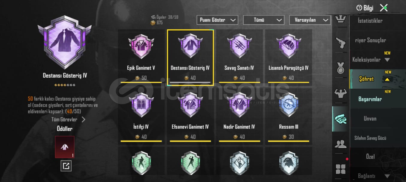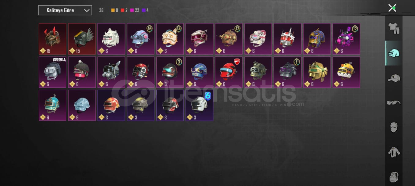 ilan videosu https://www.youtube.com/watch?v=u2qdHdIgnB0Hesap C4s11 Sezonunda kurulmuştur Hesaptaki itemler2 Dugatti3 x SuitFiravun 1 SeviyeDravion 2 SeviyeAnukhra 2 Seviye49 DestansıDalgıç SetiKara Köpek Balığı SetiAltın Tetik SetiDinsiz Tapınakçı SetiSaha Komutan Seti23 Yükseltilebilir SilahMavi Mumya m416 4 seviyeRuh Prizması Scar-l 2 SeviyeRuh Biçen Ump 4 SeviyeToplam 5 Ölüm Duyurusu Açık S...
