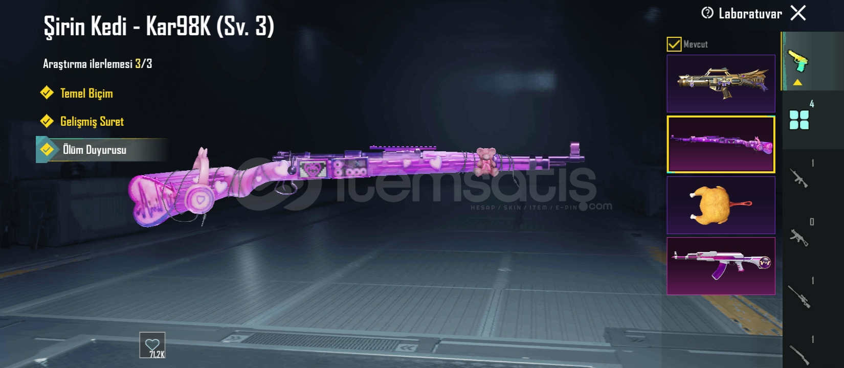 Firavun çantası varEski sezon rp si vardırHesap nadir4 yükseltilebilir silah vardır62 seviyeKar98 full