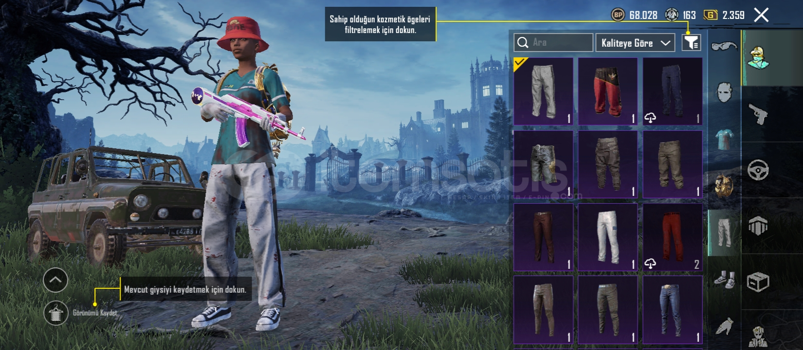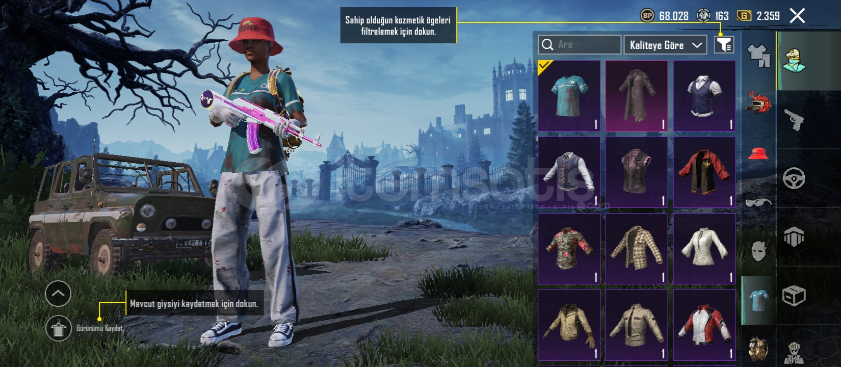 Pubg hesabı içinde nadir kıyafetler bulunur