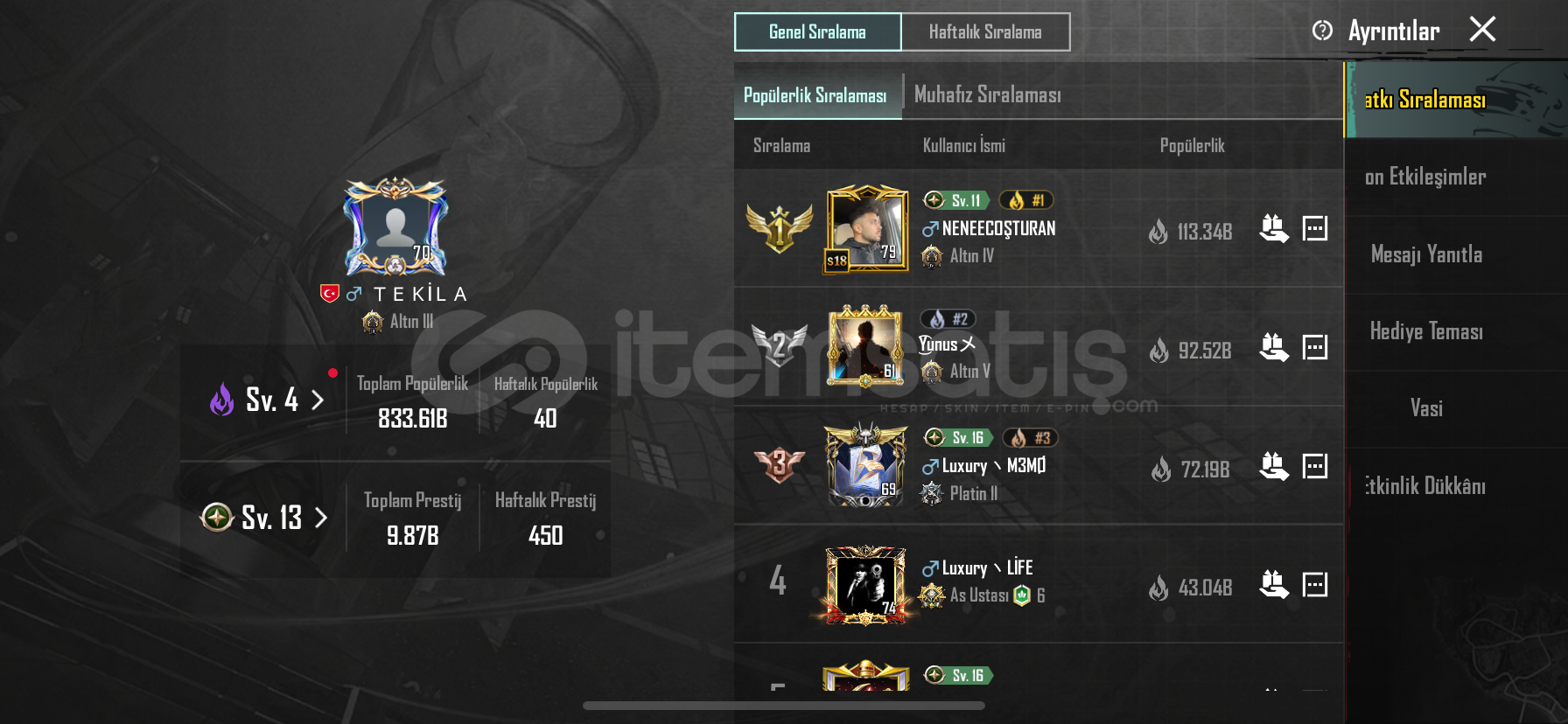 Pubg hesabı oyunu bıraktığım için uyguna veriyorum 6 yıldır oynuyorum 70 e yakın destansıbuz diyarı m4 6.seviye 19 kez rp 3 sezon rp prime plus numara eposta facebook bağlı