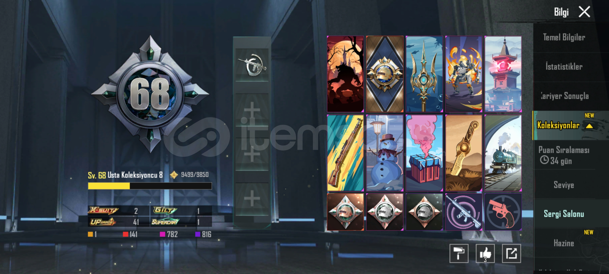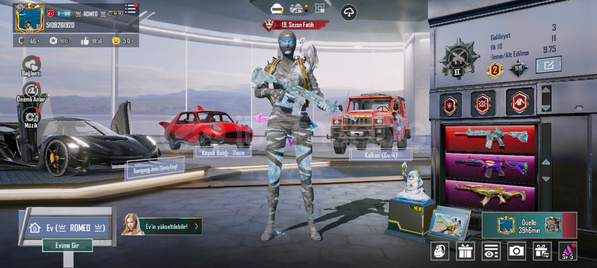 Pazarlık payı vardır temiz bağ temiz hesap full kombin nadir mavi alt üst nadir hesap Spor araba 1 tane ❗2 xsuit ❗41 yükseltilir silah çokğu ölüm duyurusu vardır ❗Nihayi mumya ❗Konbin full ❗Güzel araçlar ❗141 destansı ❗