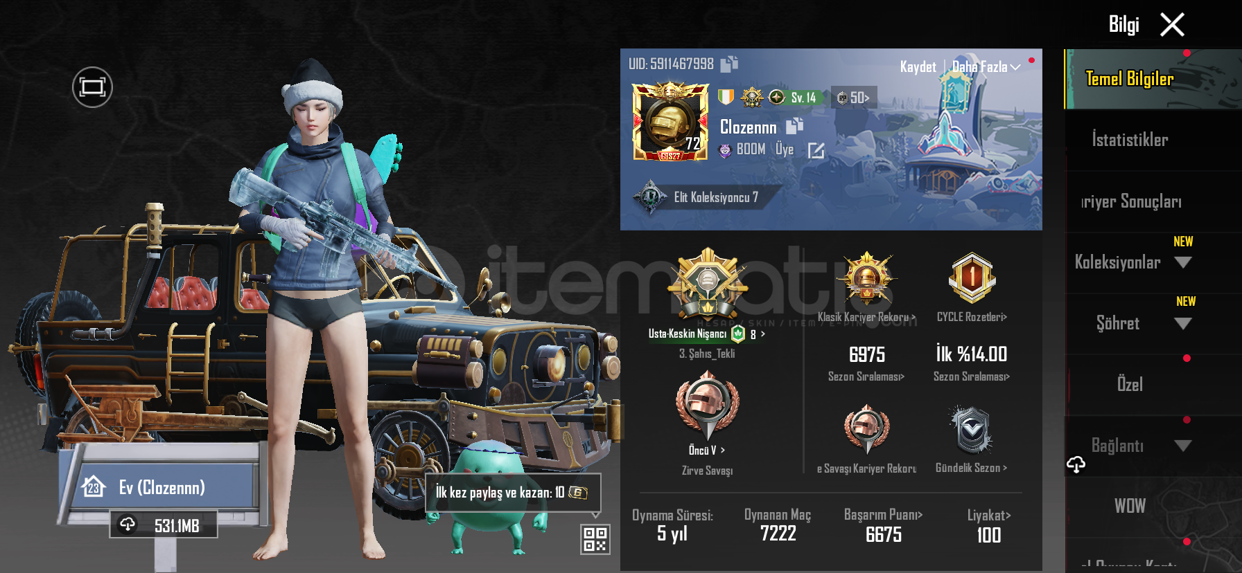 PUBG hesap 73 sv Fatih buzM416 crew üst tek bağ