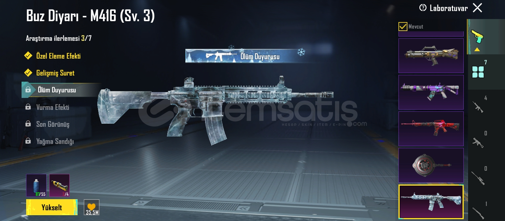 Buz M4 sonraki seviyeye 4 materyal istiyor 3 tanesi var 1 tane eksik