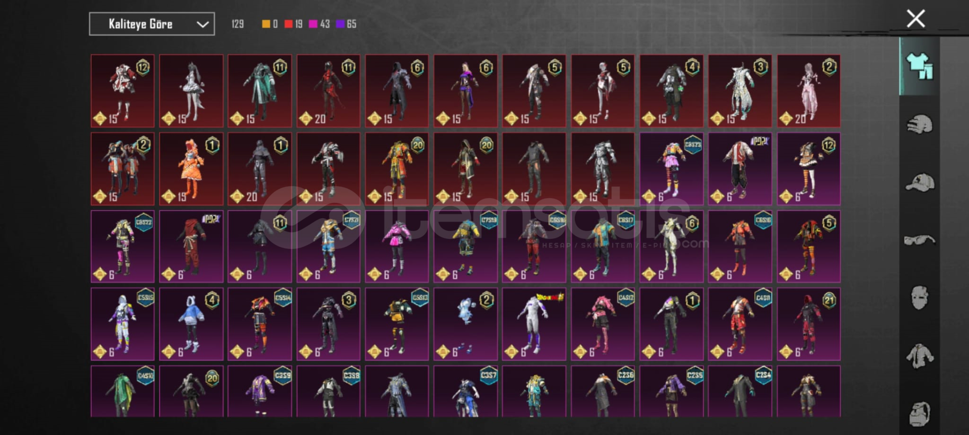 hesap temiz 50+ lvl t@k@s yokal ömür boyu kullan pazarlık yaparıztoplam 35 destansı 20 destansı giysi15 yüksltilebilir silah var yüksek ses scar l 1 lvl lider panter dbs 3 lvldenizlerin evrimi ump 3 küçük midilli m762 3 lvlbuz kask varmaskara çanta