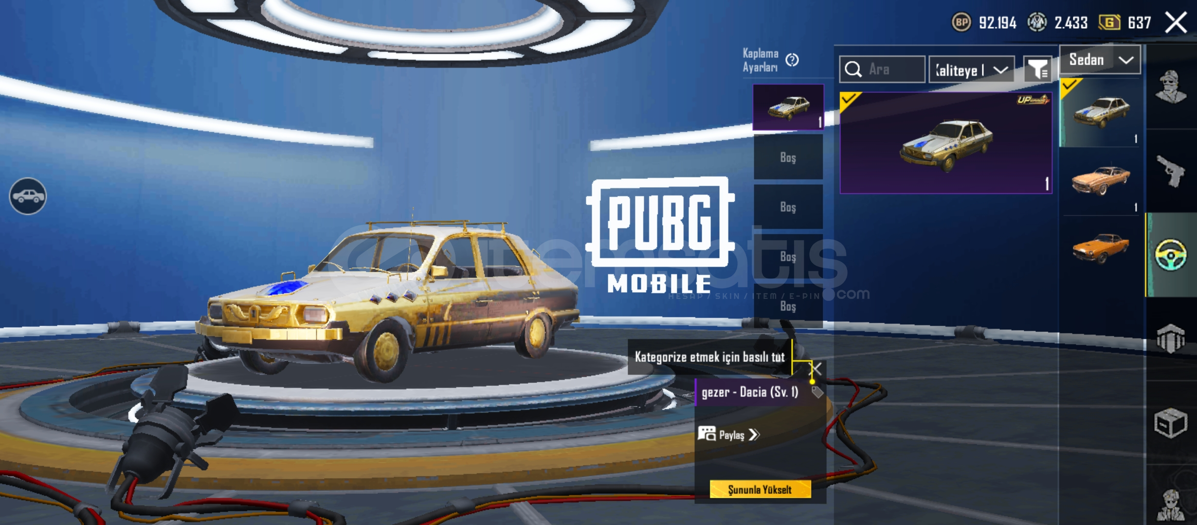 • 2 adet gelistirilebilir ve 1 adet gelistirilebilir araba