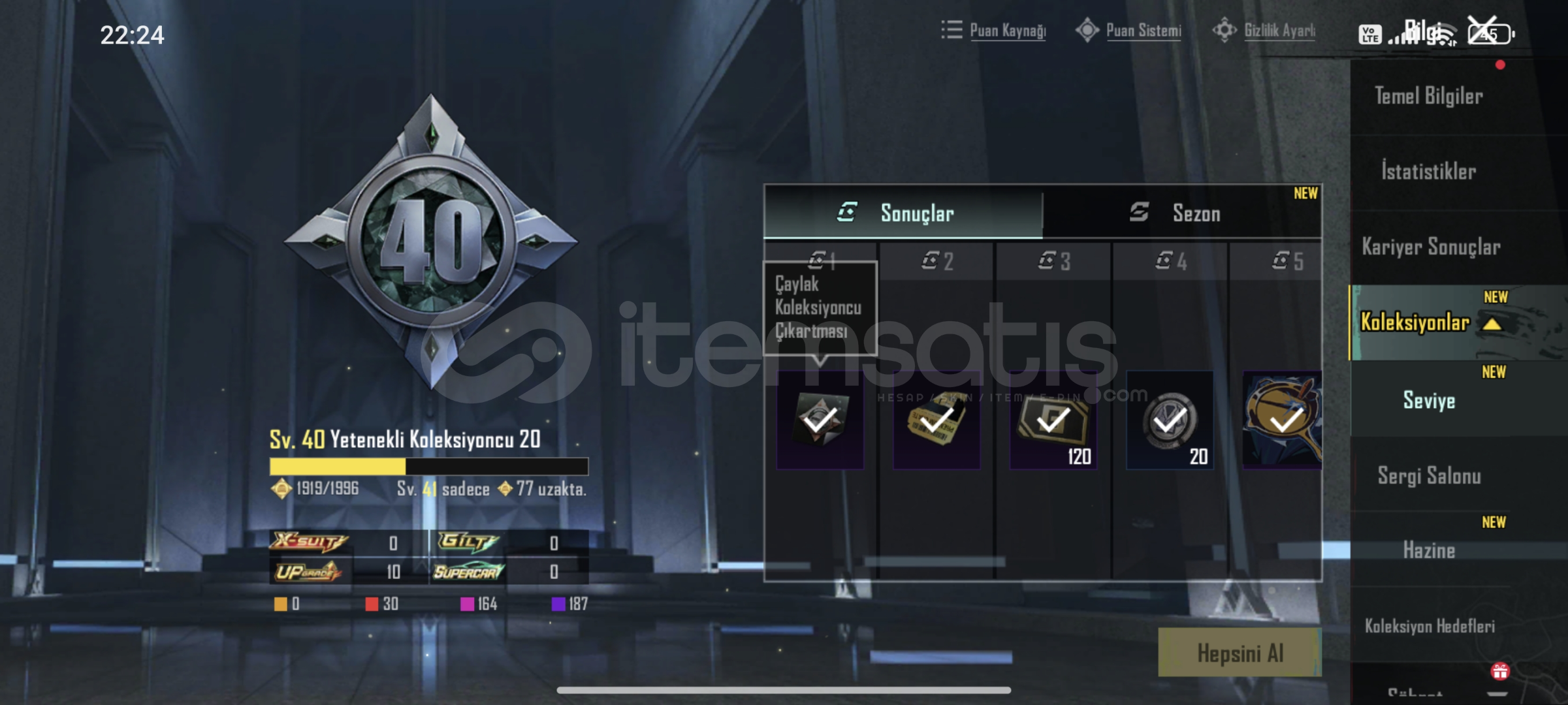 40 koleksiyon seviyesi 30 destansı 10 yükseltilebilir silah bulunmaktadir