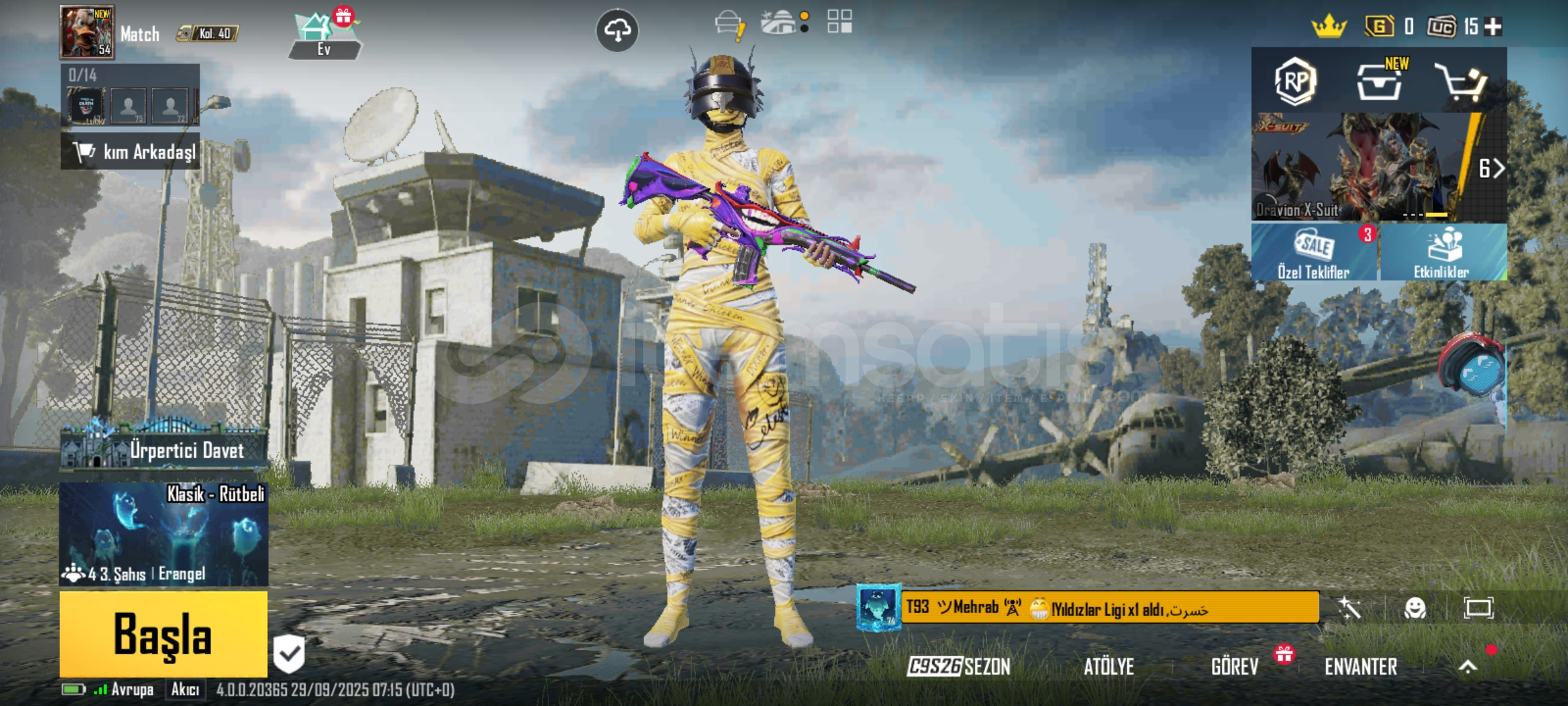 PUBG Mobile kategorisinde 15 gün adı altında satış yapılması kesinlikle kabul edilemez, gerçeği yansıtmayan ve doğruluğu olmayan bir işlem olduğu için yasaktır, tespiti durumunda lütfen bize bildiriniz.