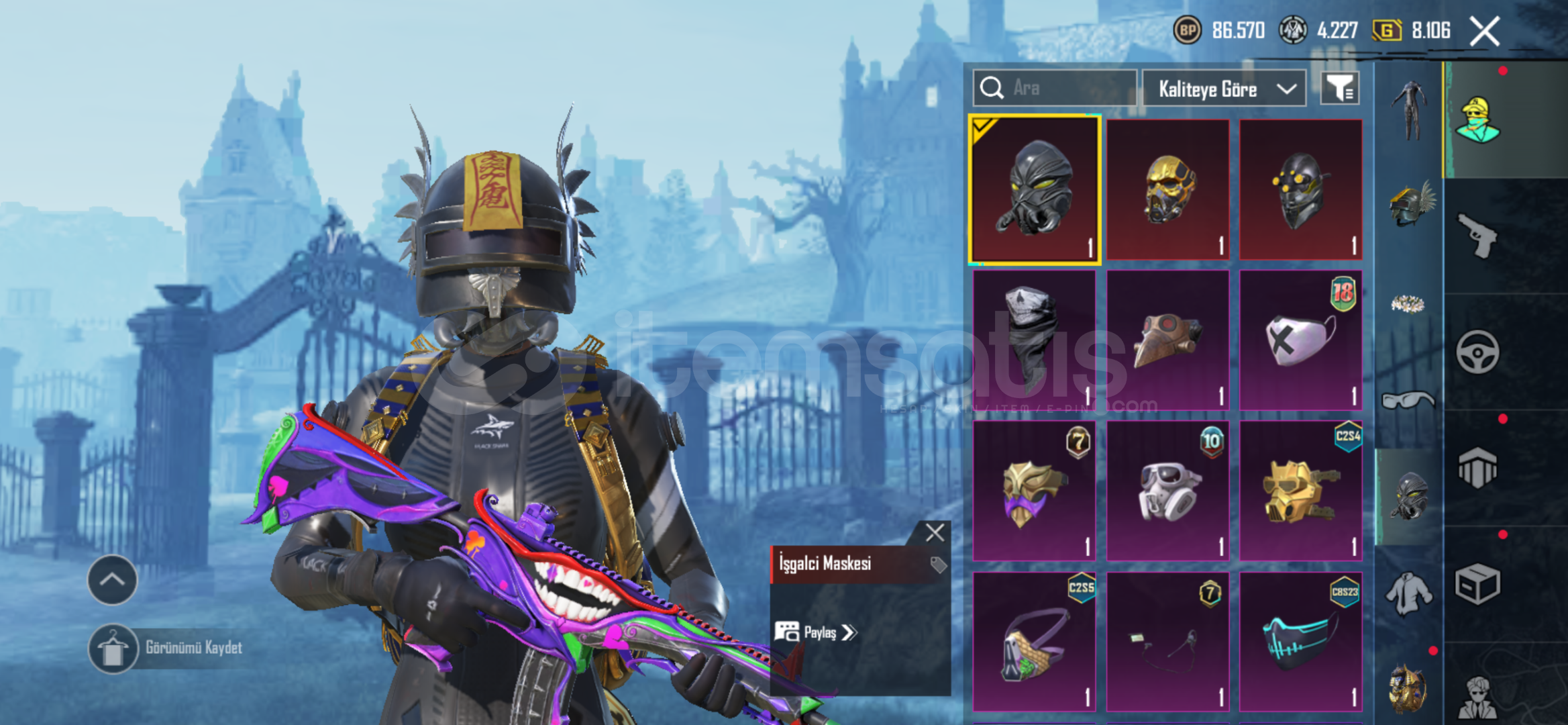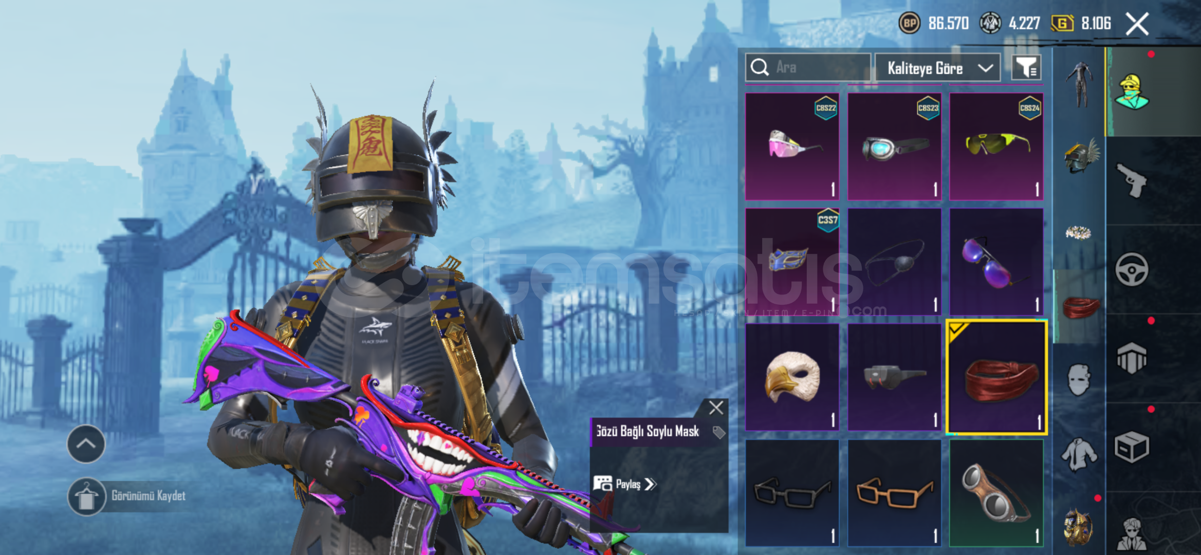 Tek bağ tel no C2S5 FATİHFORM GEÇMİŞİ YOK TERTEMİZİSİM DEĞİŞTİRME KARTI DA VARDIR-MASKARA M416 5 SEVİYE + olarak 3x ve lazer dürbünleri ve dipçiği vardır.-Ruhbiçen Ump 2 seviye+olarak lazer dürbün , lazer tutamak ve hafif tutamak , alev gizleyici vardır.Ruhbiçen El bombası ve molotof da varMASKELİ MEDYUM KASKI FİRAVUN ÇANTASIFİRAVUN X-sui...