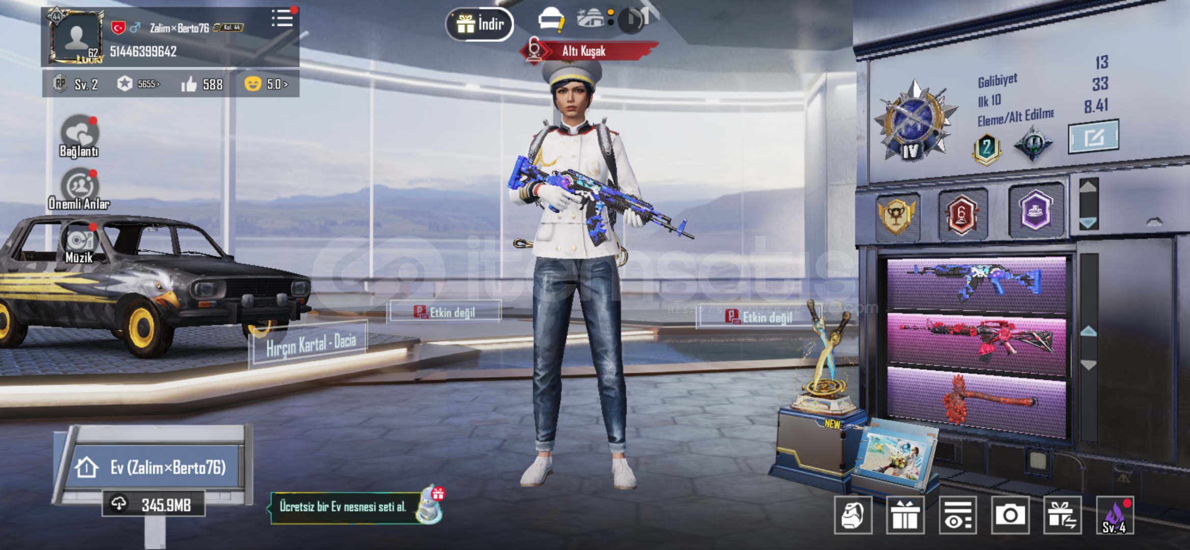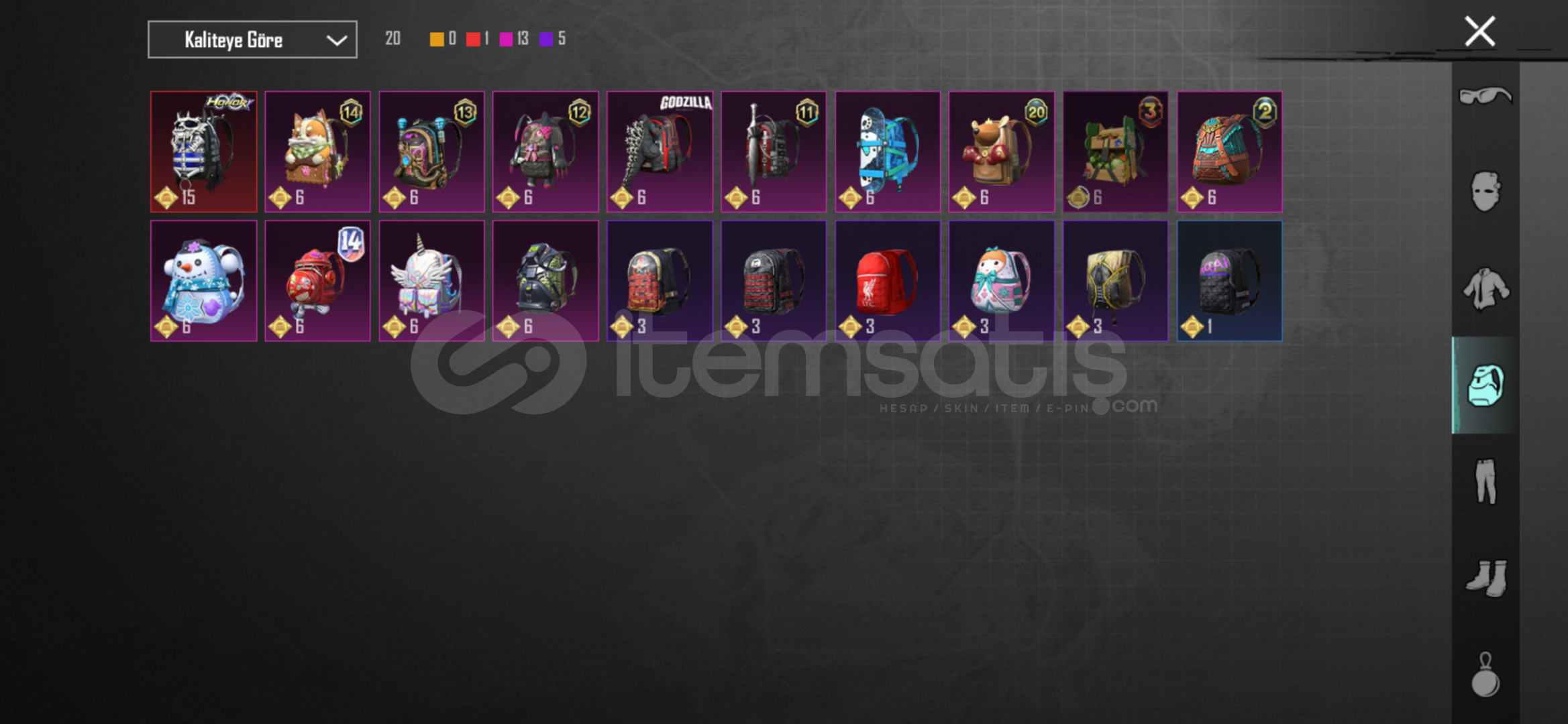 96 silah deseni 9 tane yükseltilebilirhesapta maskara seti soytarı seti Çelik asker seti godzilla seti ve alevli godzilla seti işgalci seti crew üstü komutan seti üstü komutan seti şapkası altı kuşak ünvanı vardır 4 tane modifikasyon malzemesi vardır Bağlar .temizdir üzerinize deviredilir