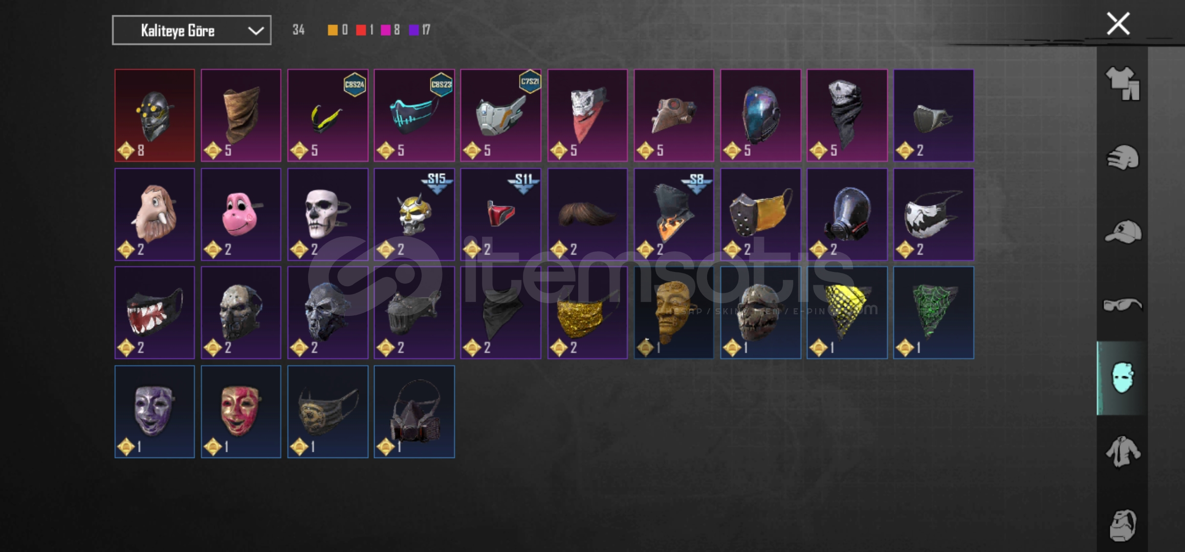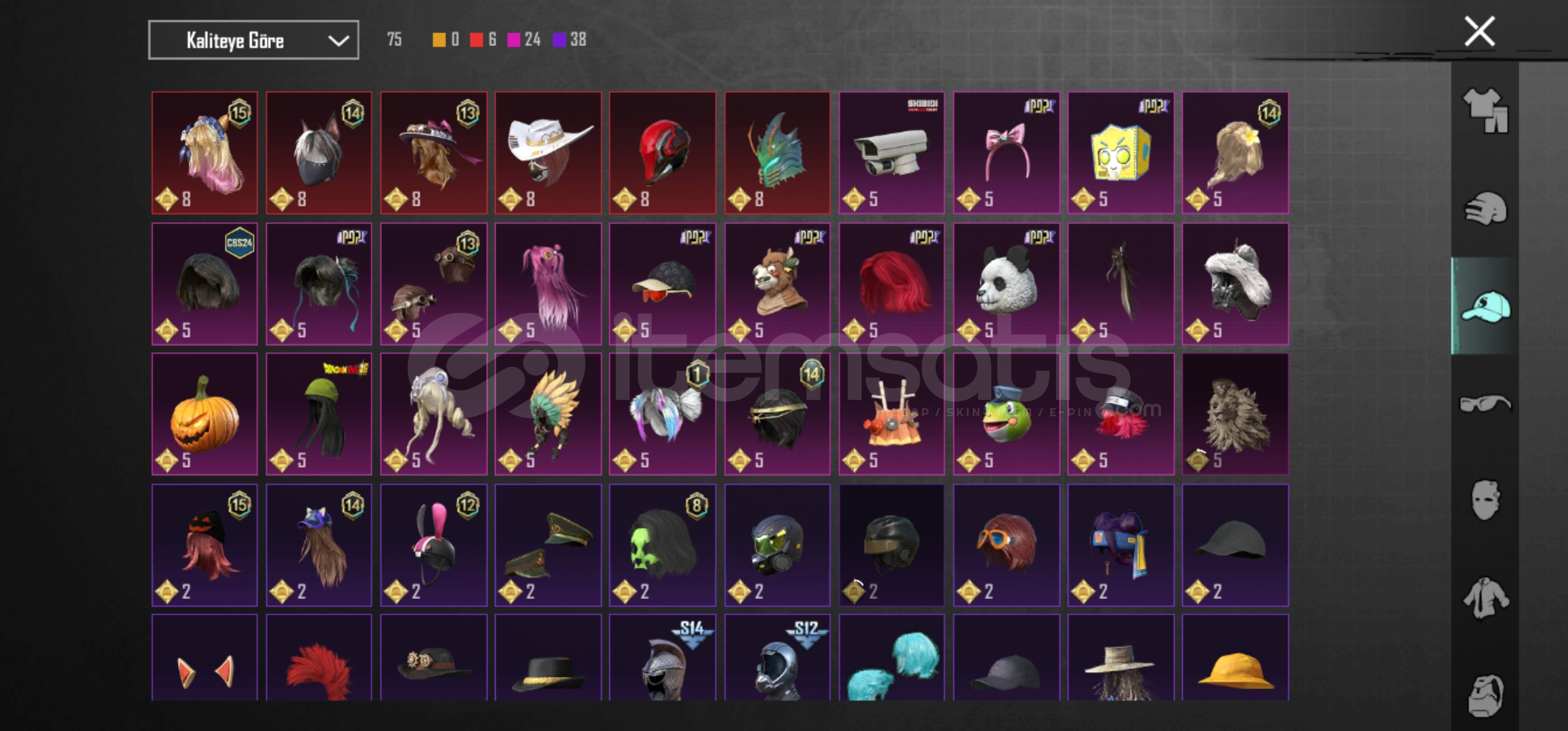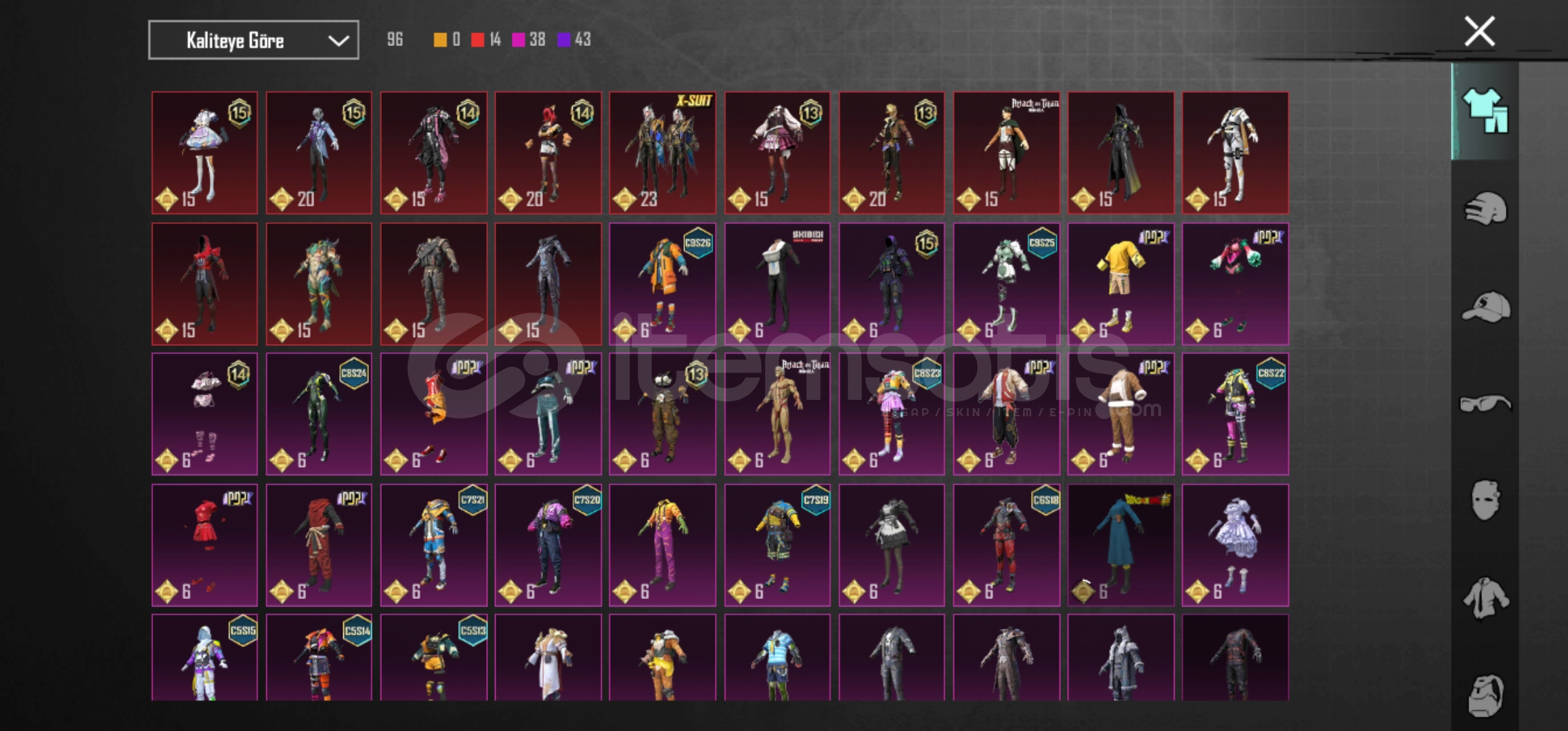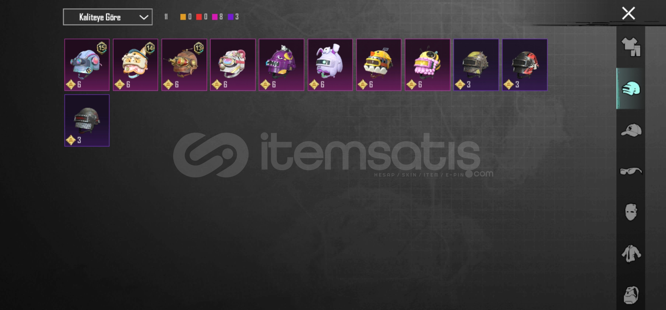 ✨ Kelman Shop Satış Güvencesi ile Başlangıç Hesabı ✨👕 Kıyafetler13 Destansı 💣1 X Suıt 💥38 Pembe 🌸43 Mor 💜🪖 Kask8 Pembe 🌸3 Mor 💜🎩 Şapka6 Destansı 🔥24 Pembe 🌸38 Mor 💜😷 Maske1 Destansı 🔥8 Pembe 🌸17 Mor 💜🎒 Çanta6 Pembe 🌸3 Mor 💜🚗 Desenli Araçlar3 Y&u...
