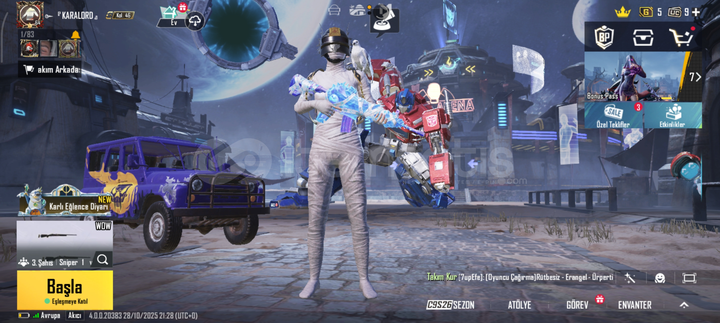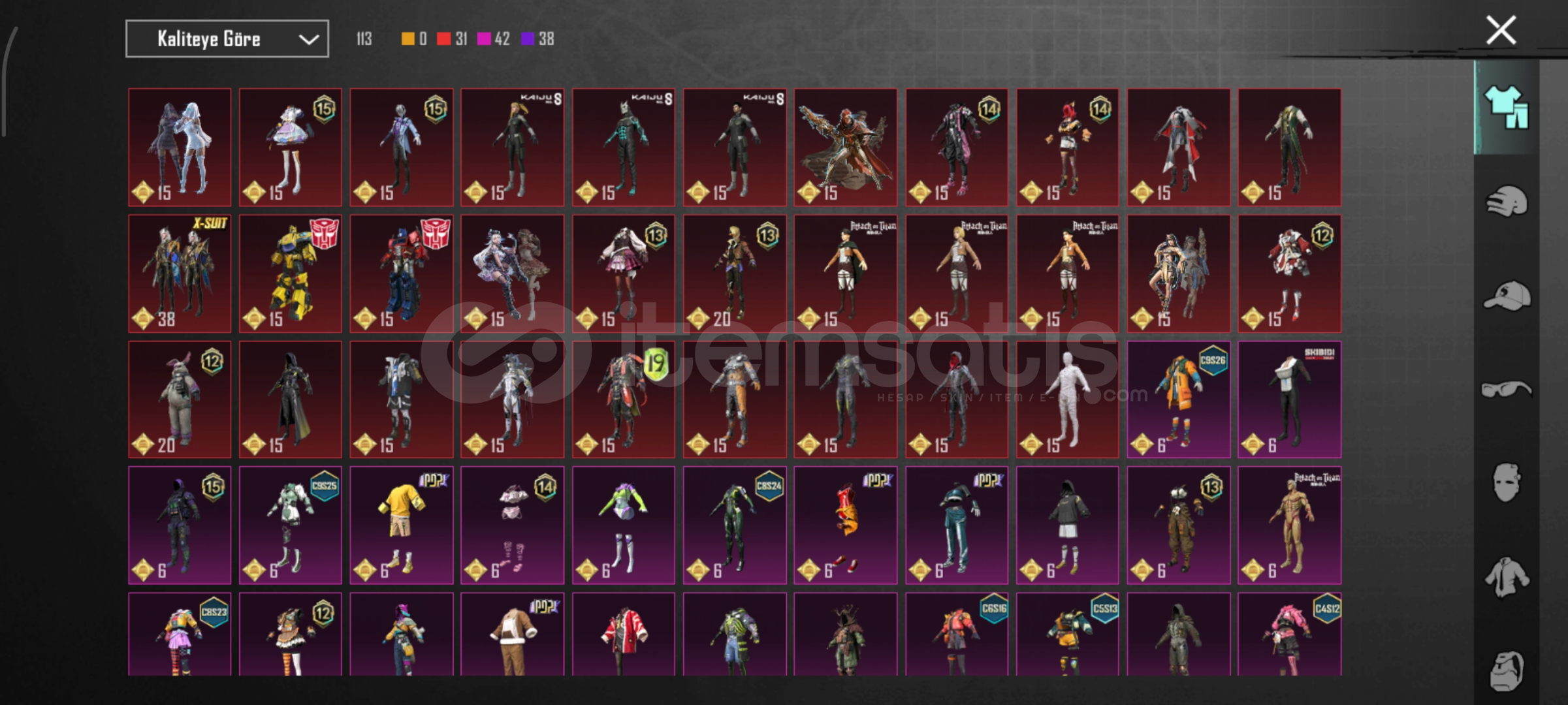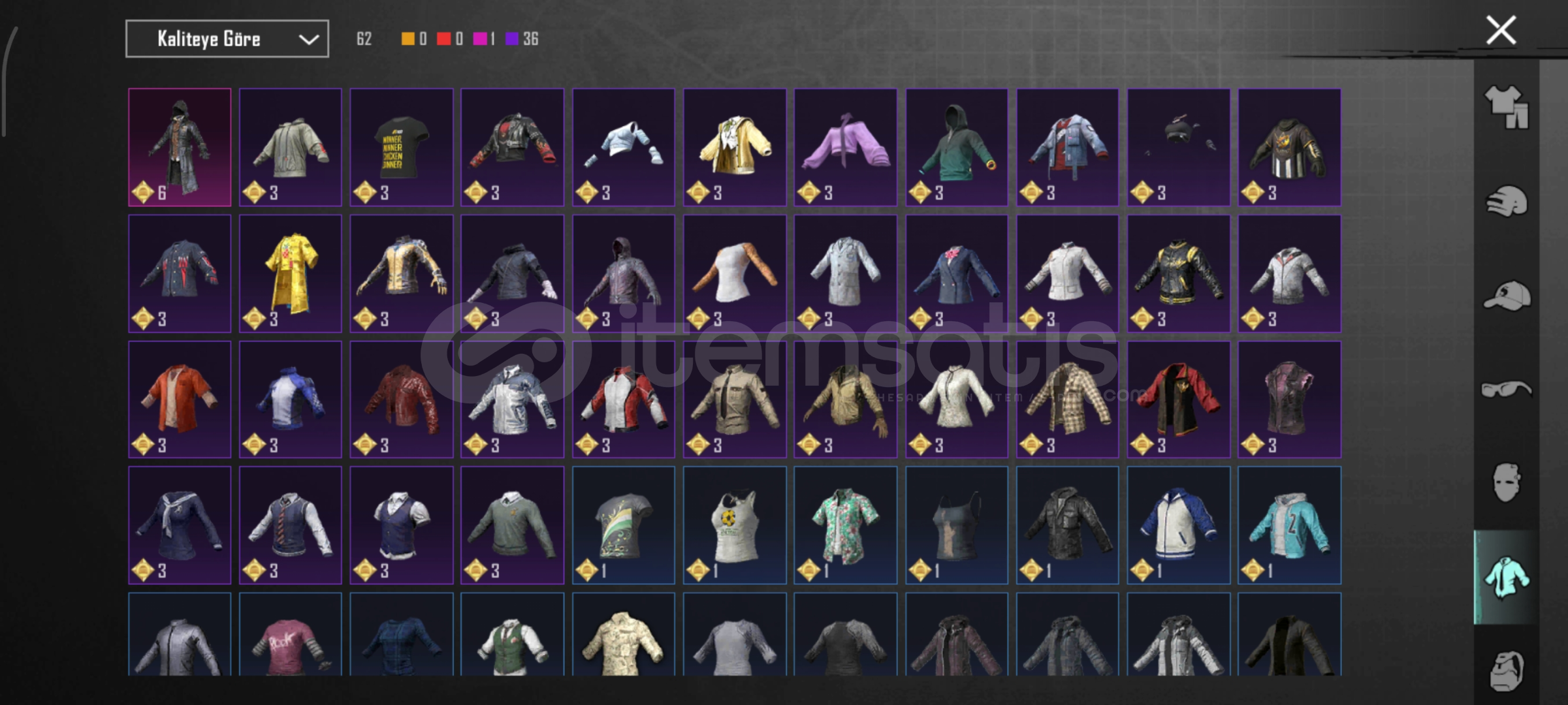 62 seviye hesap 40 destansı mumya 1 x-suit ,emojiler araçlar ve daha fazlası